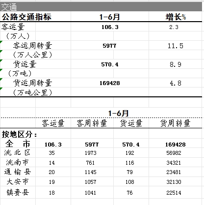 2024年公路交通指标1-6月
