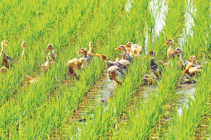 大安弱碱大米实行稻蟹共生、鸭养稻田的种植模式,河蟹与鸭为稻田除草灭虫,提供丰富肥料。