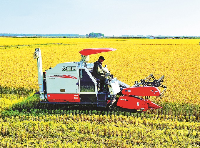 金秋时节,稻谷飘香,大安弱碱大米喜获丰收。安宣文/摄