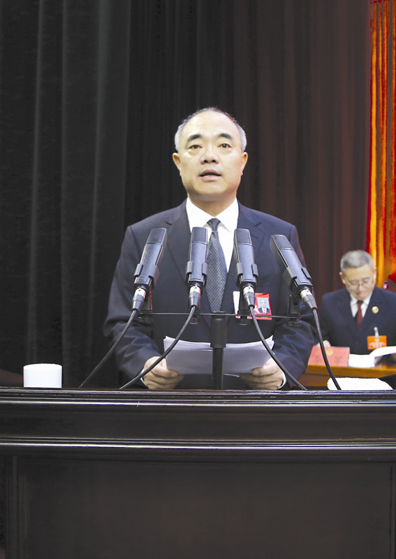 张馨作《政协白城市第六届委员会常务委员会工作报告》。白城日报记者摄