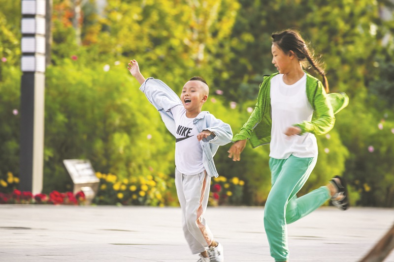 公园广场,让孩子热情奔跑。 李晓明/摄