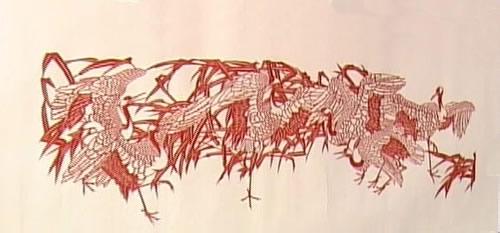 王岩的剪纸作品以花鸟、人物为主,代表作有《一百单八将》、《百花仙子》、《百猫图》、《大观园》、《金陵十二钗》、《八仙过海》、《十二生肖》、《向海珍禽》等。
