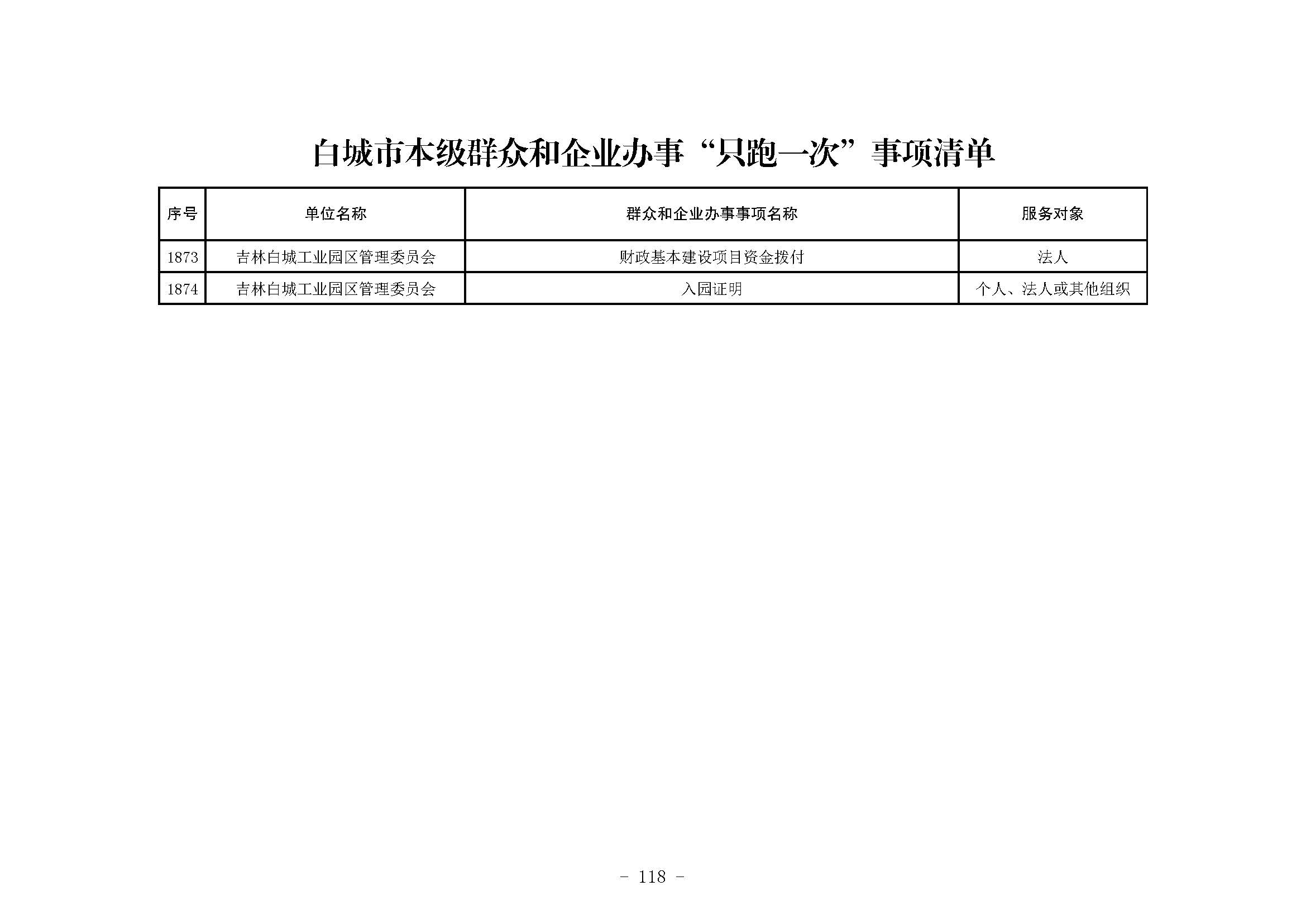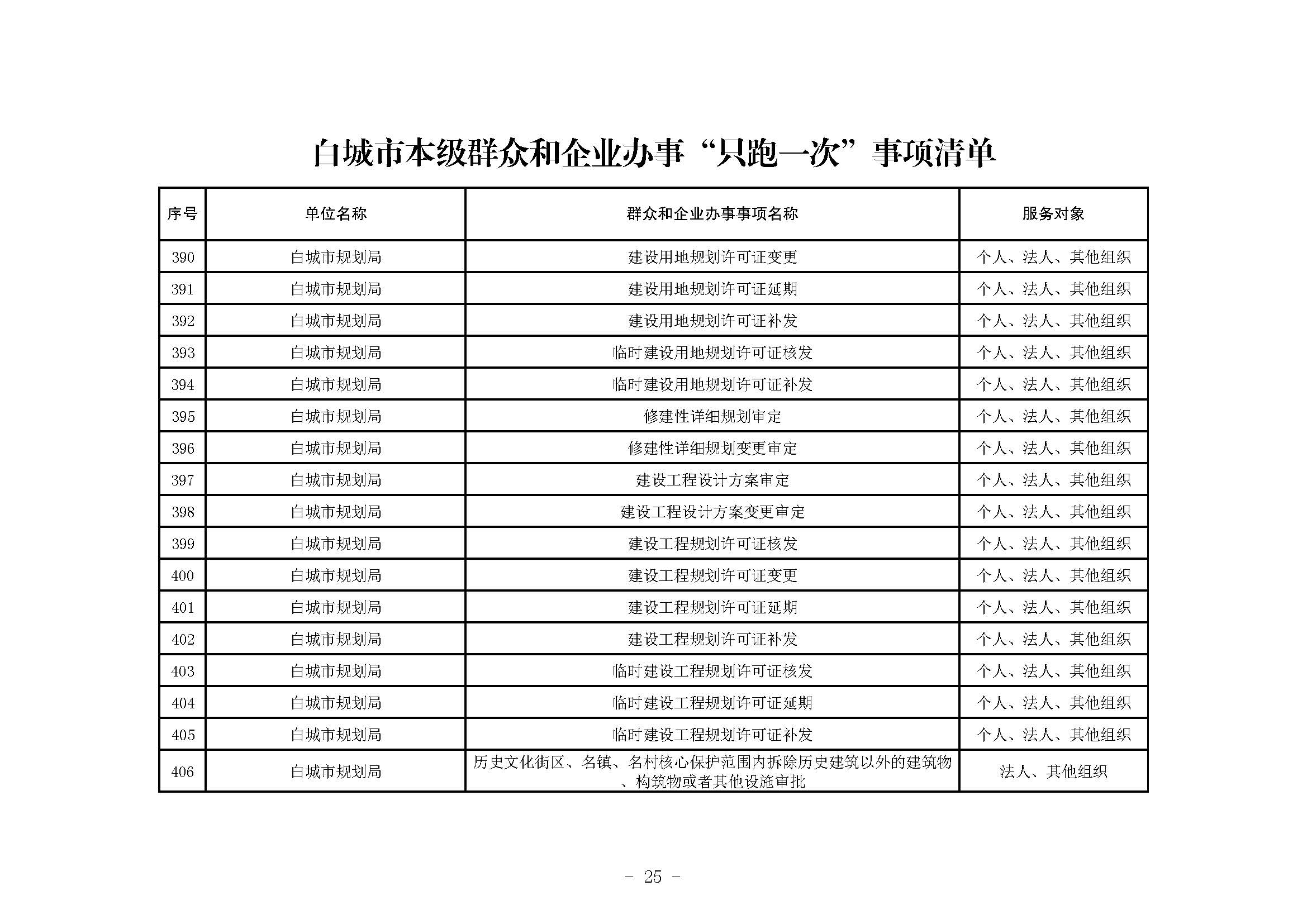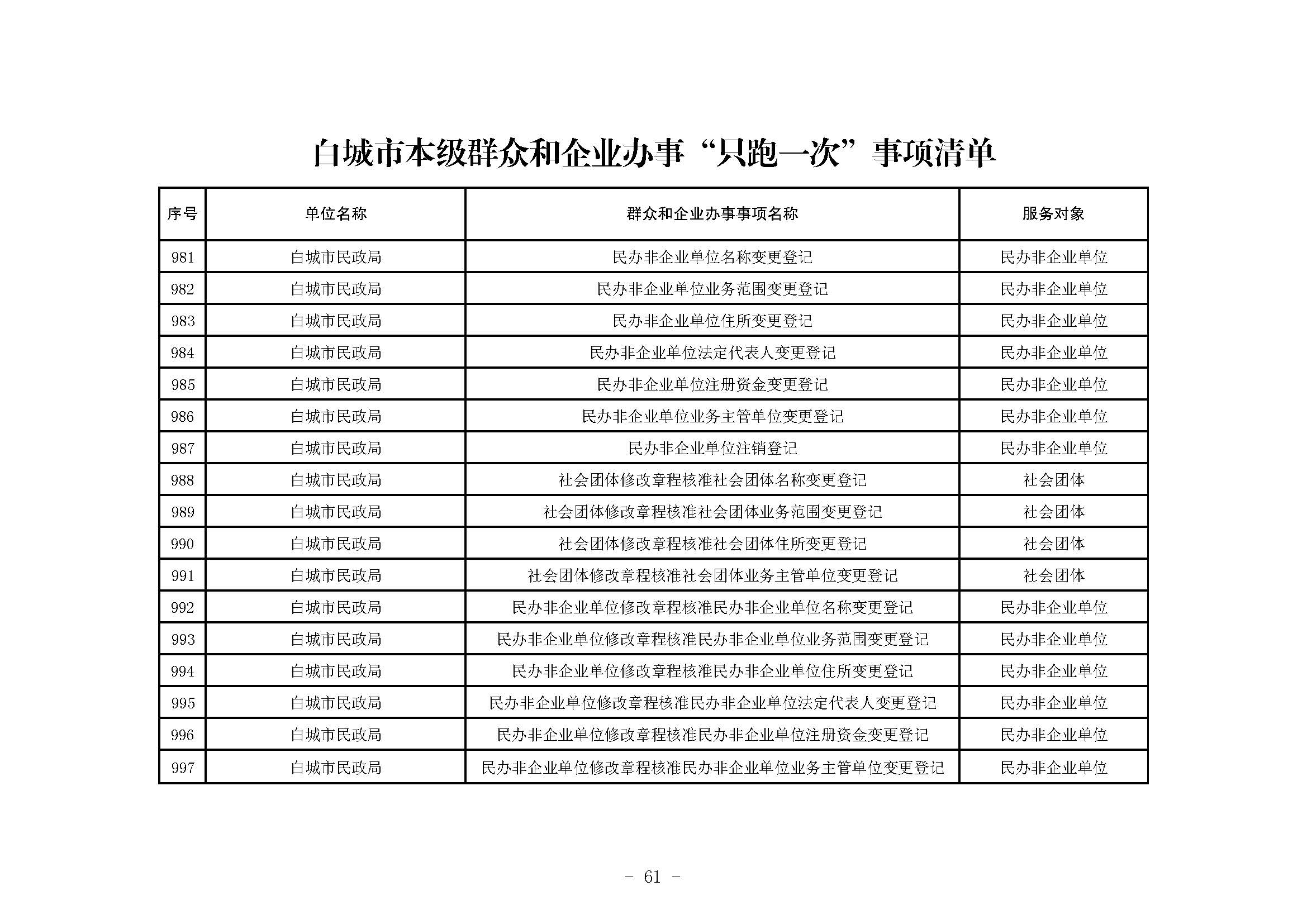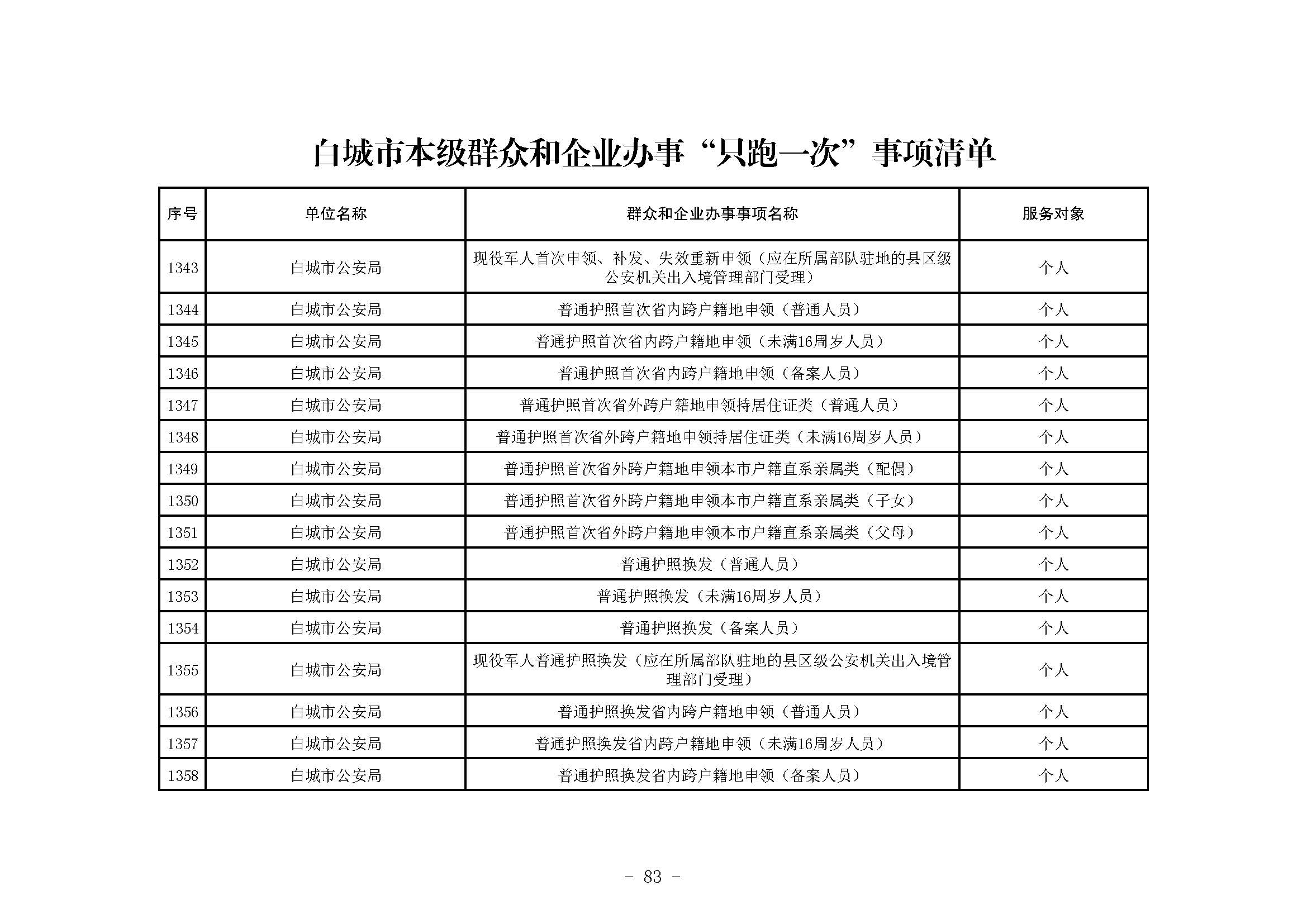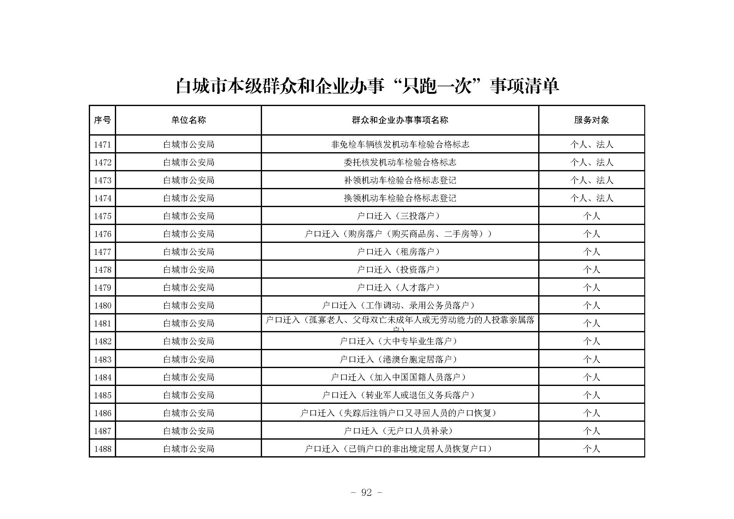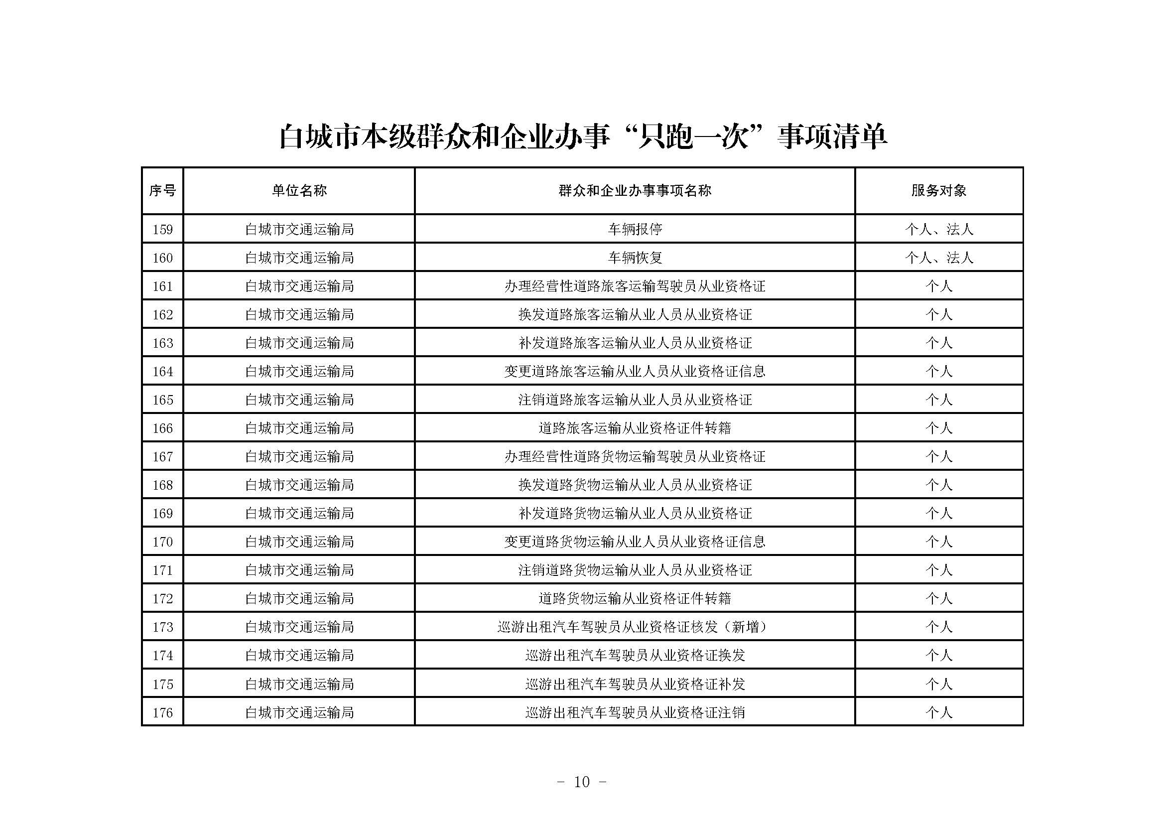 白城市市本级群众和企业办事“只跑一次”事项清单