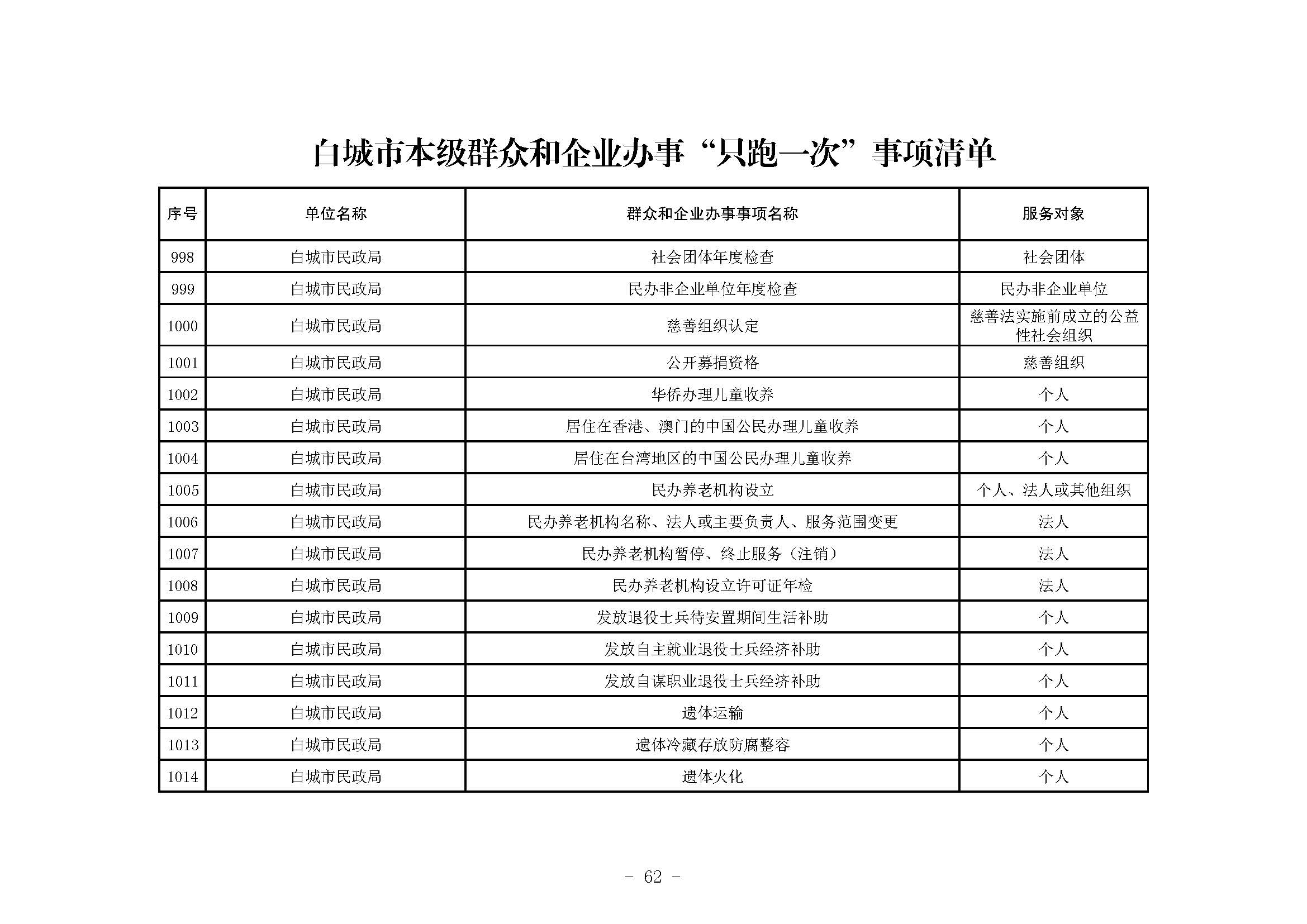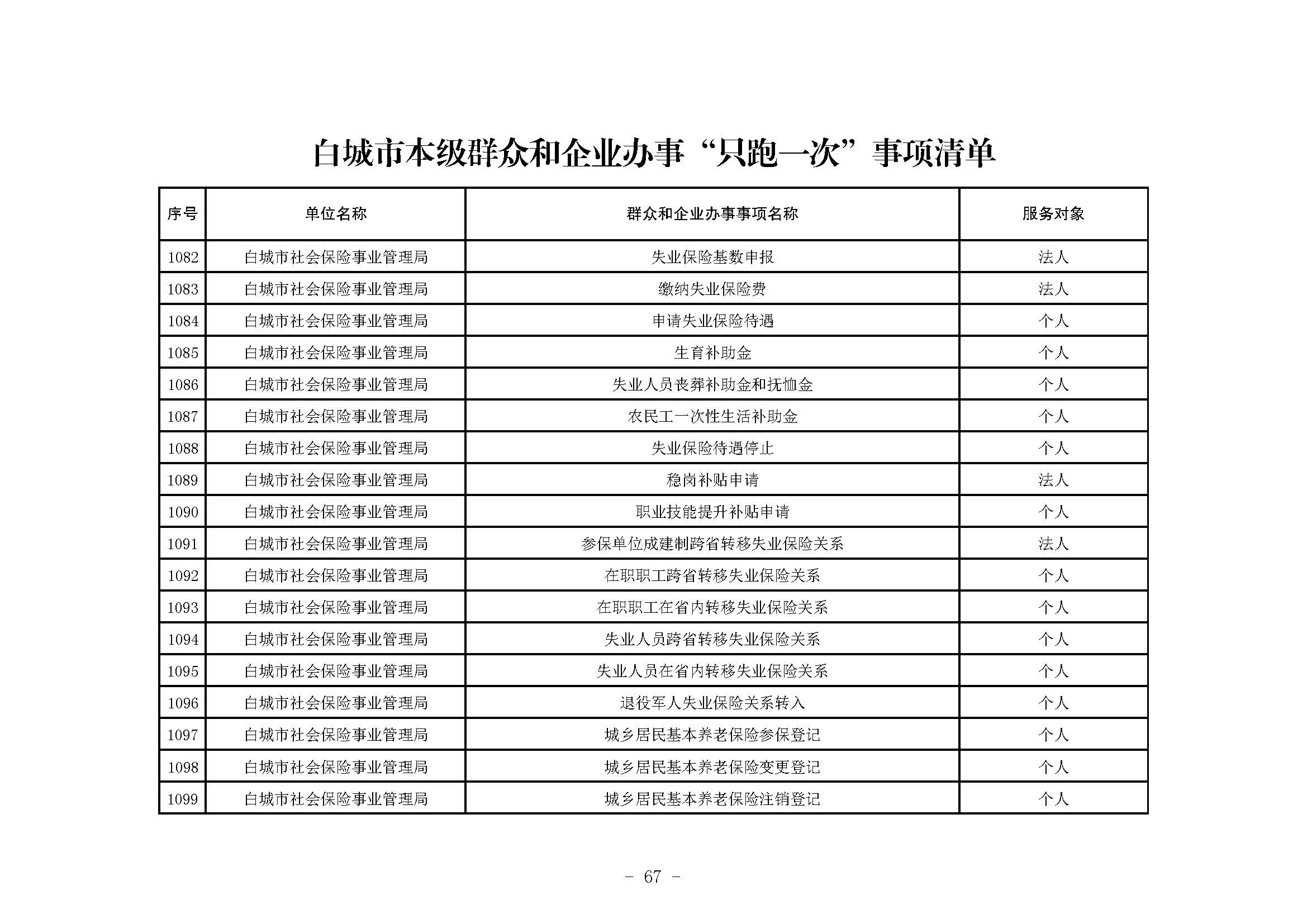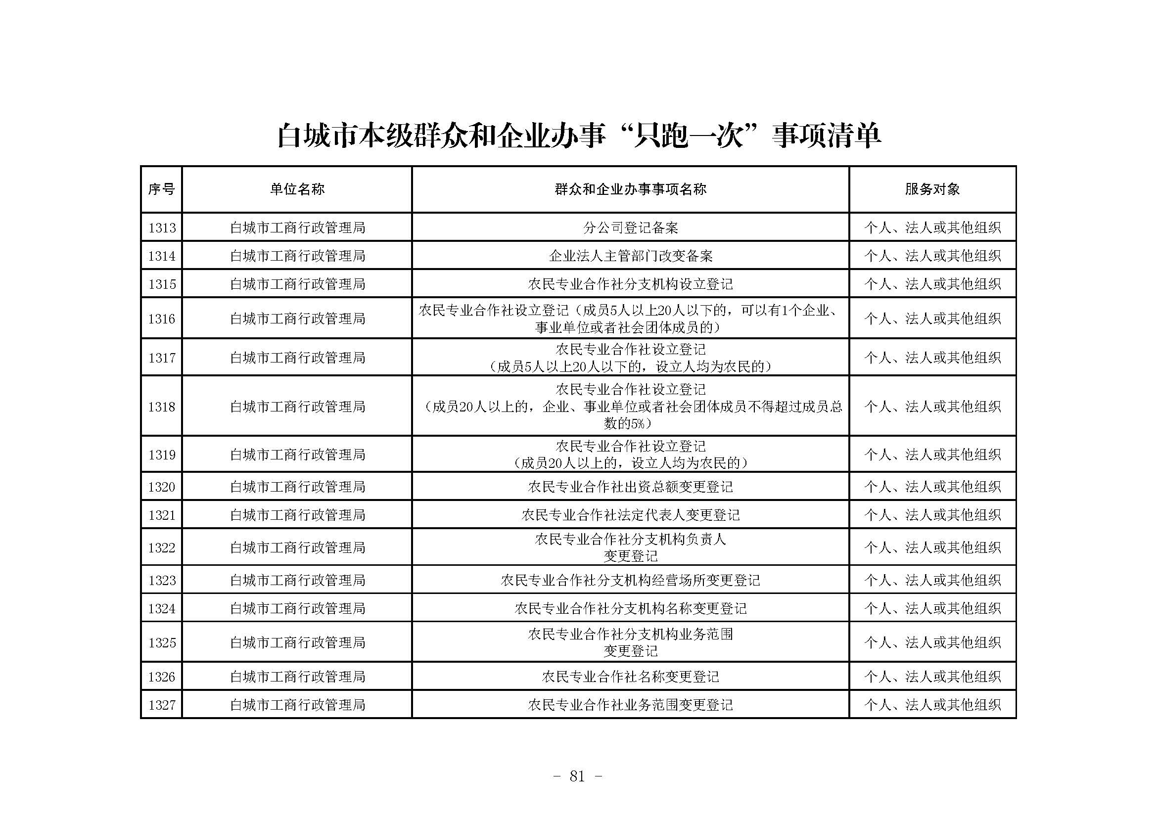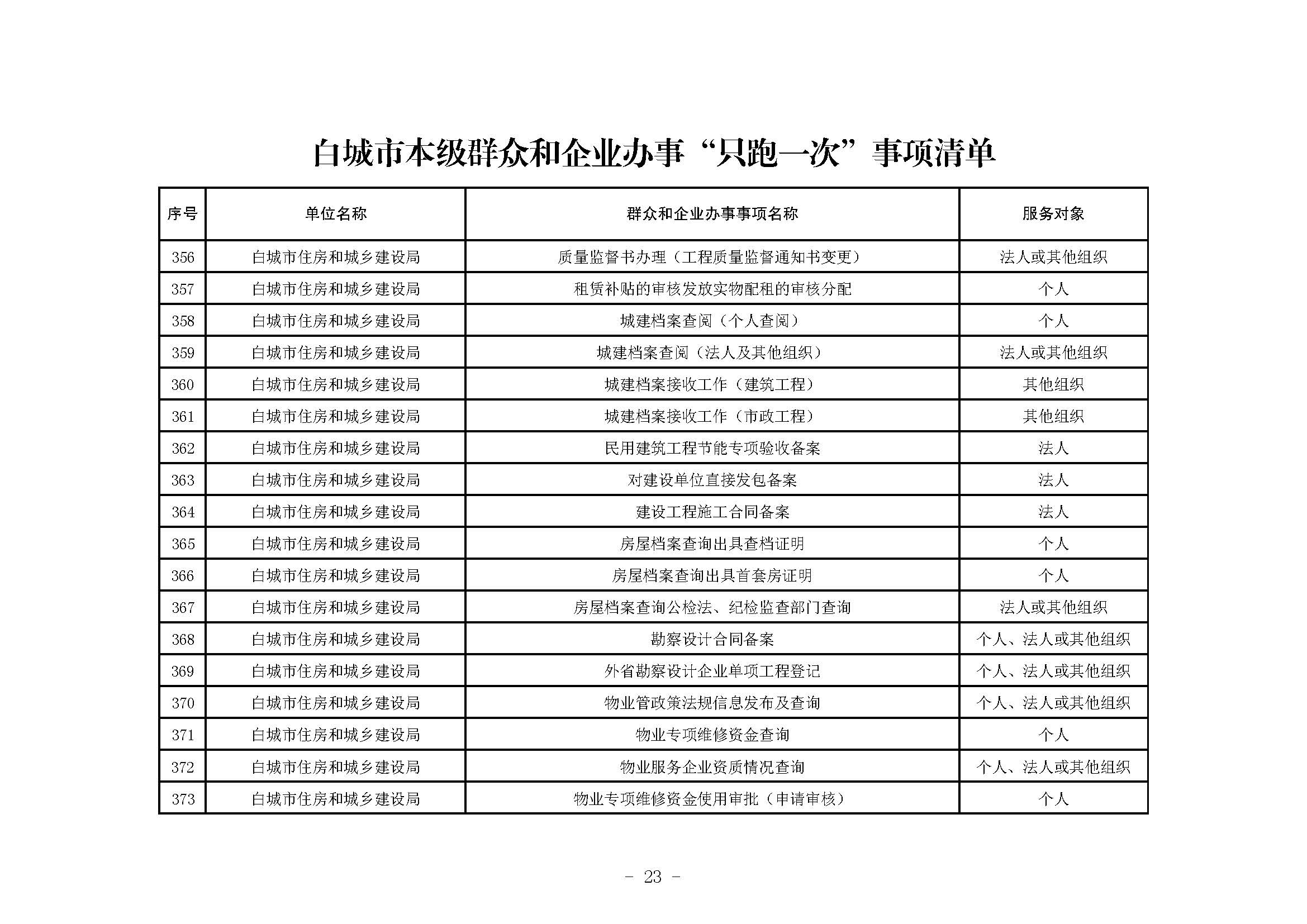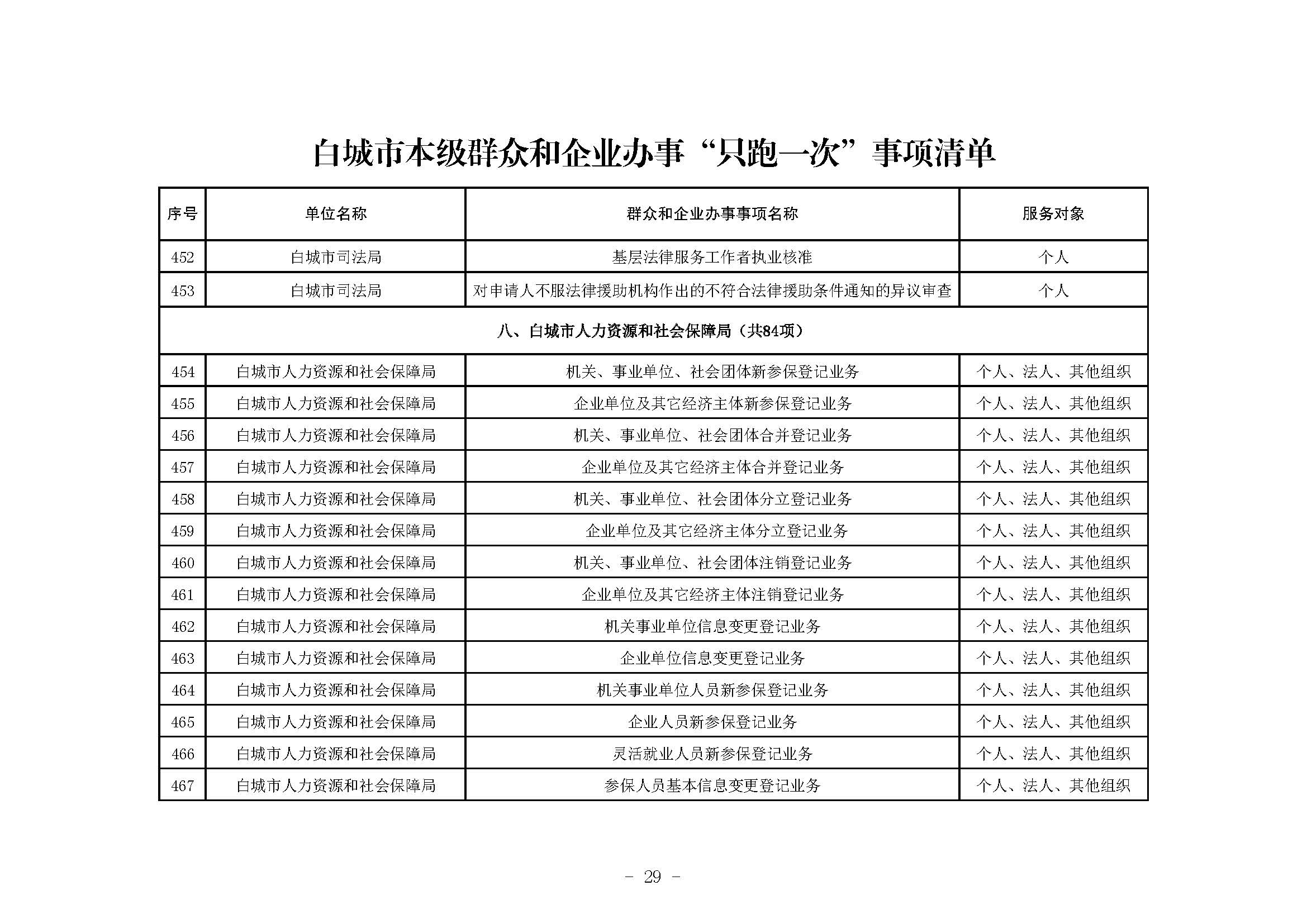 白城市市本级群众和企业办事“只跑一次”事项清单