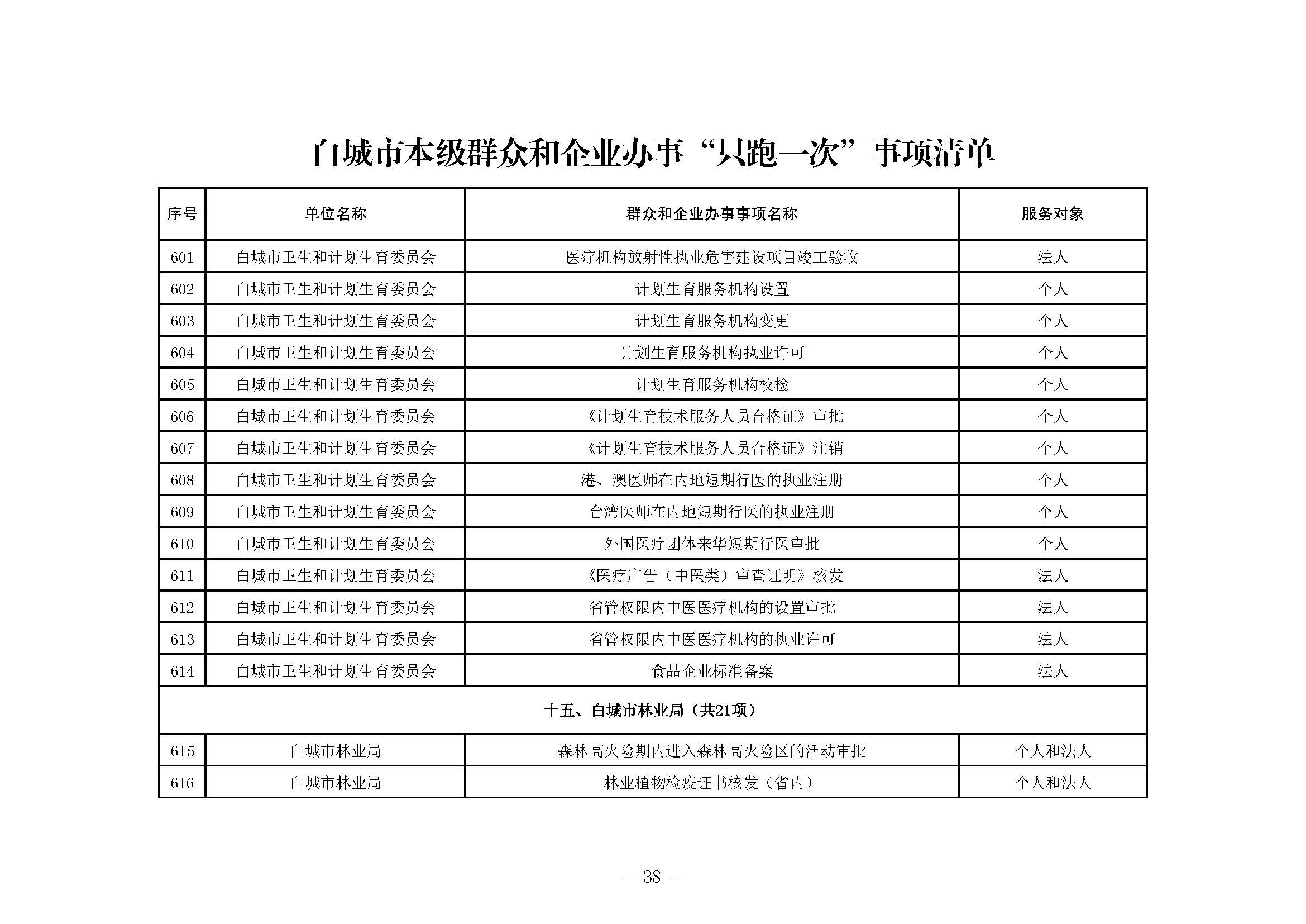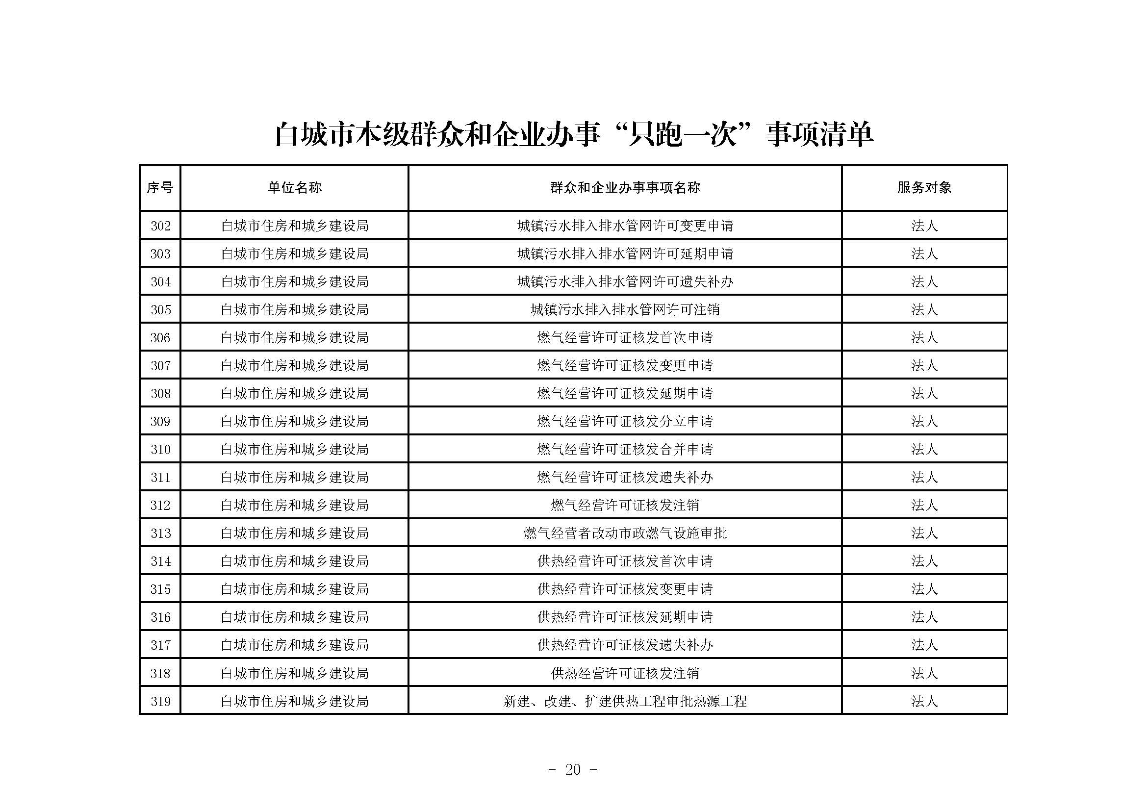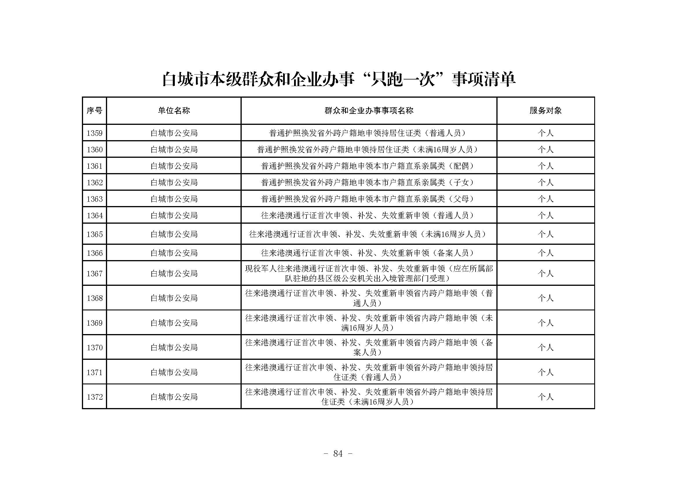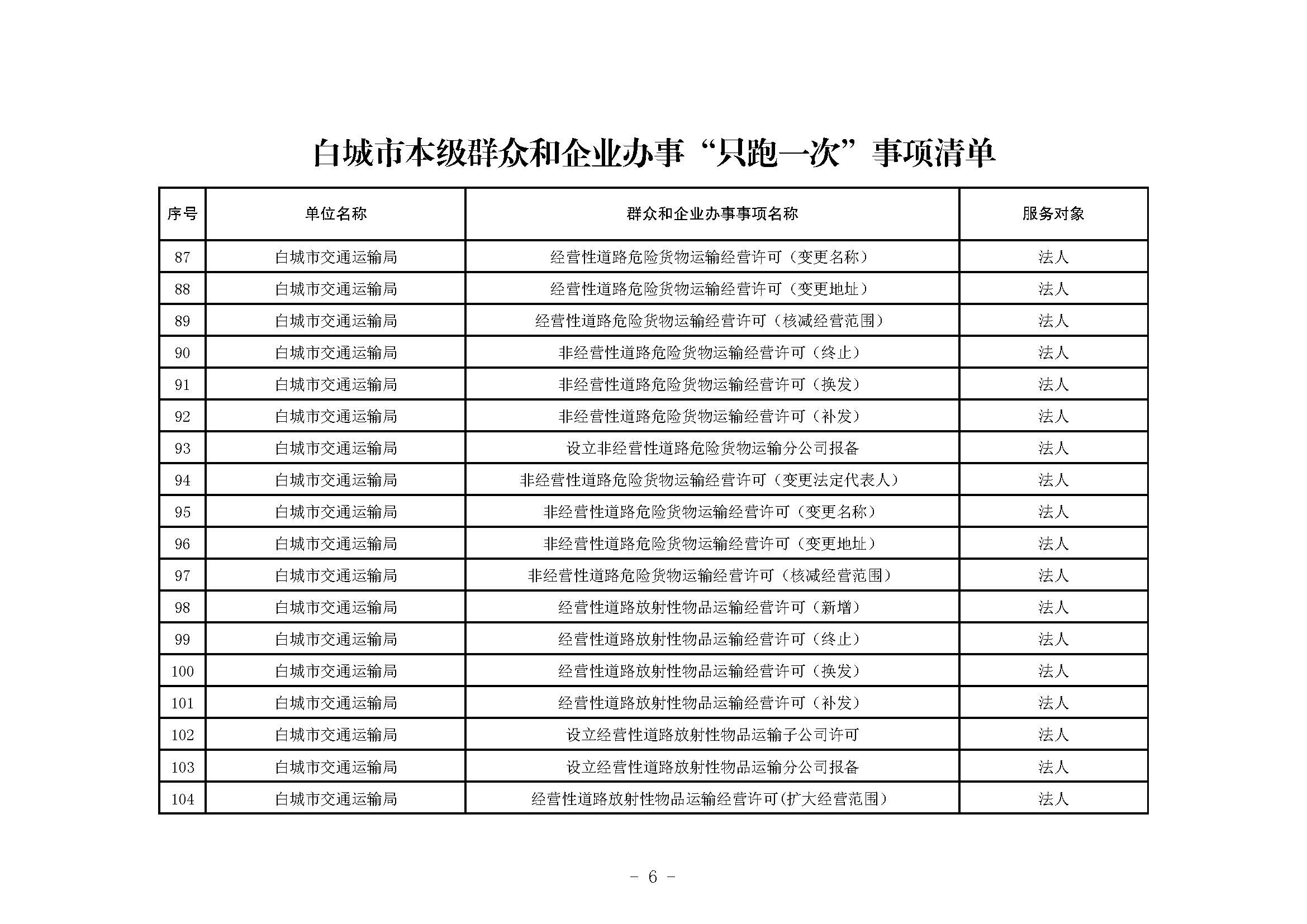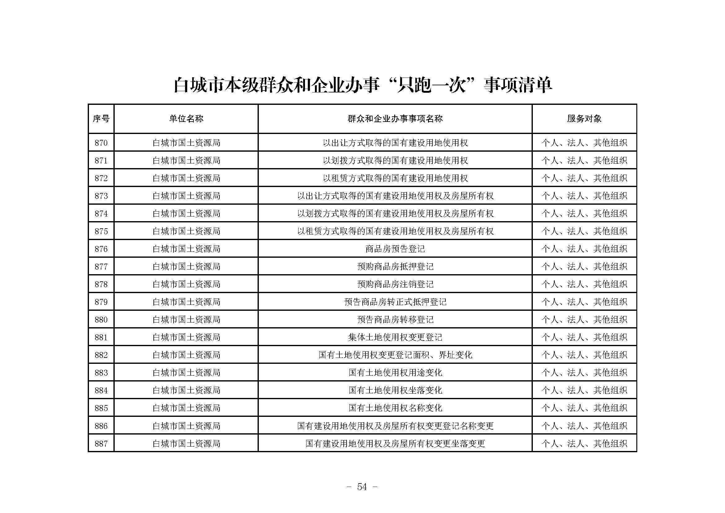 白城市市本级群众和企业办事“只跑一次”事项清单
