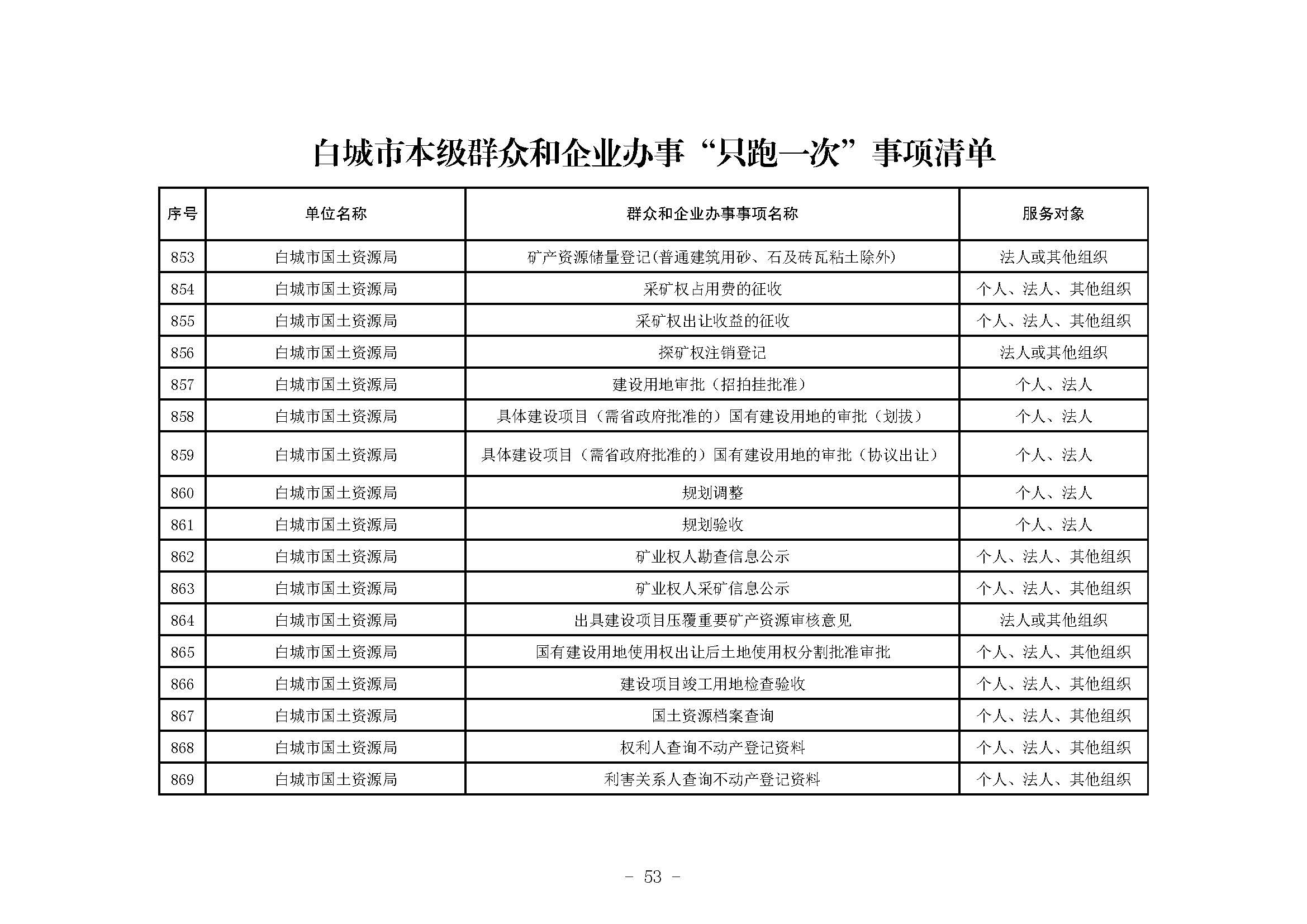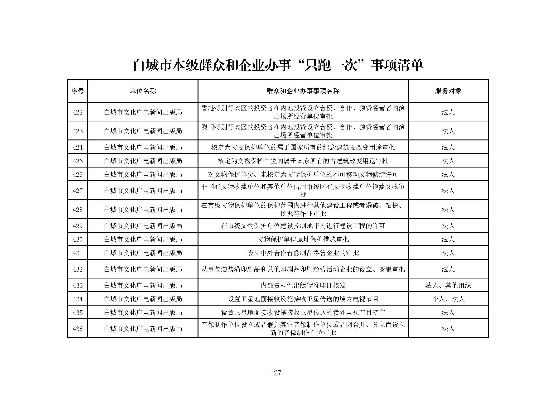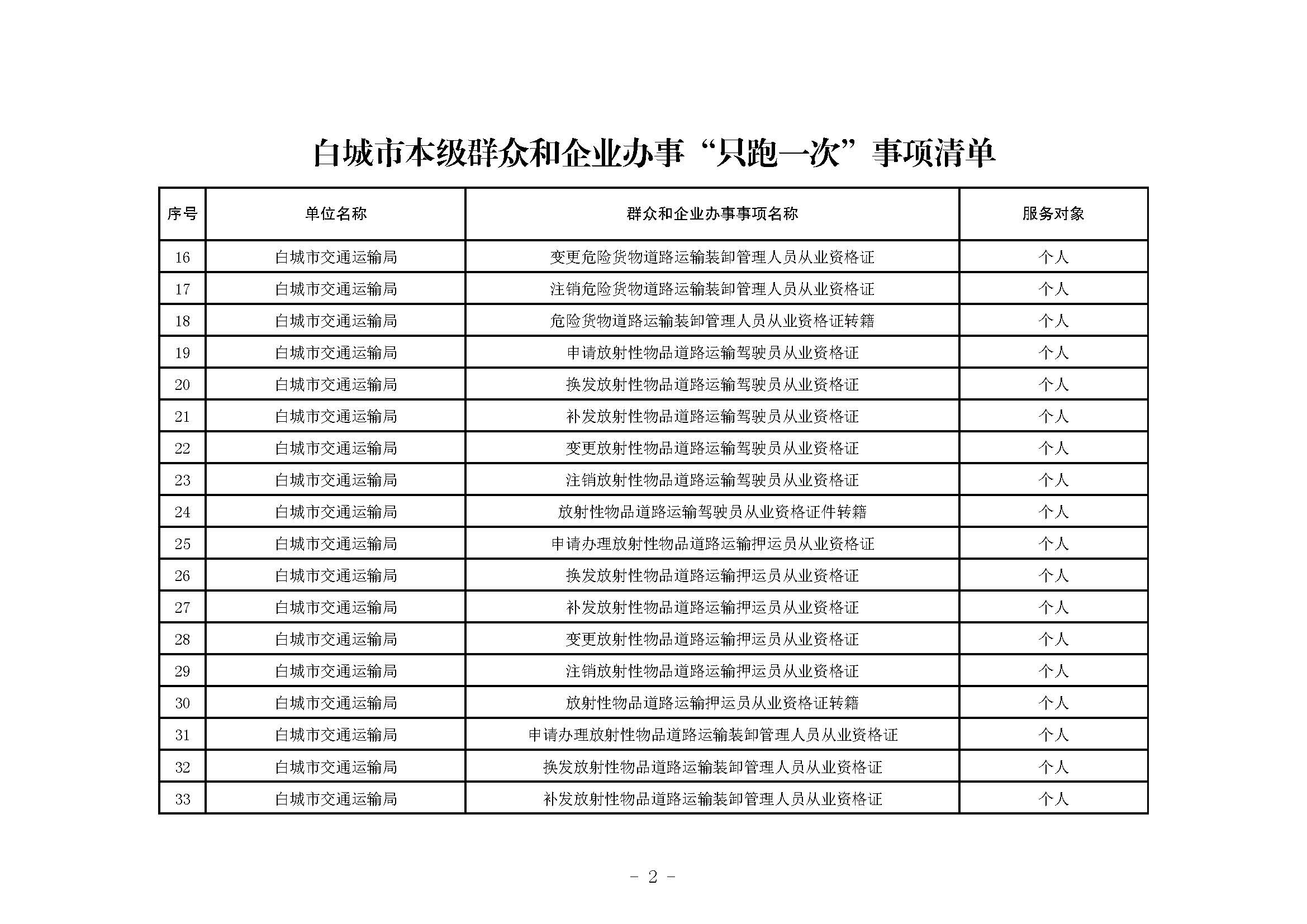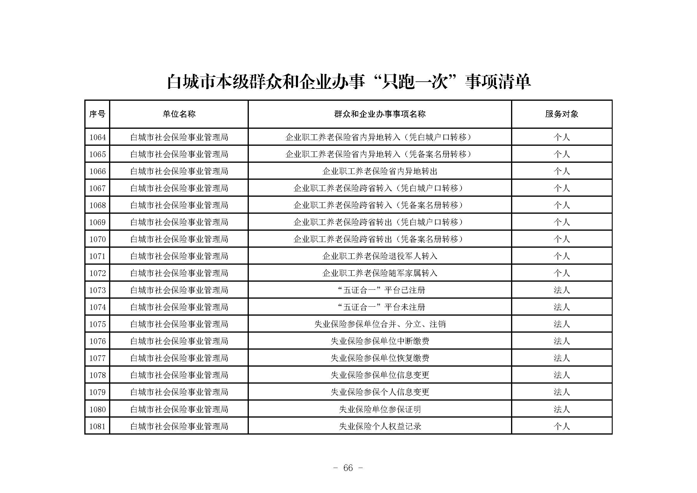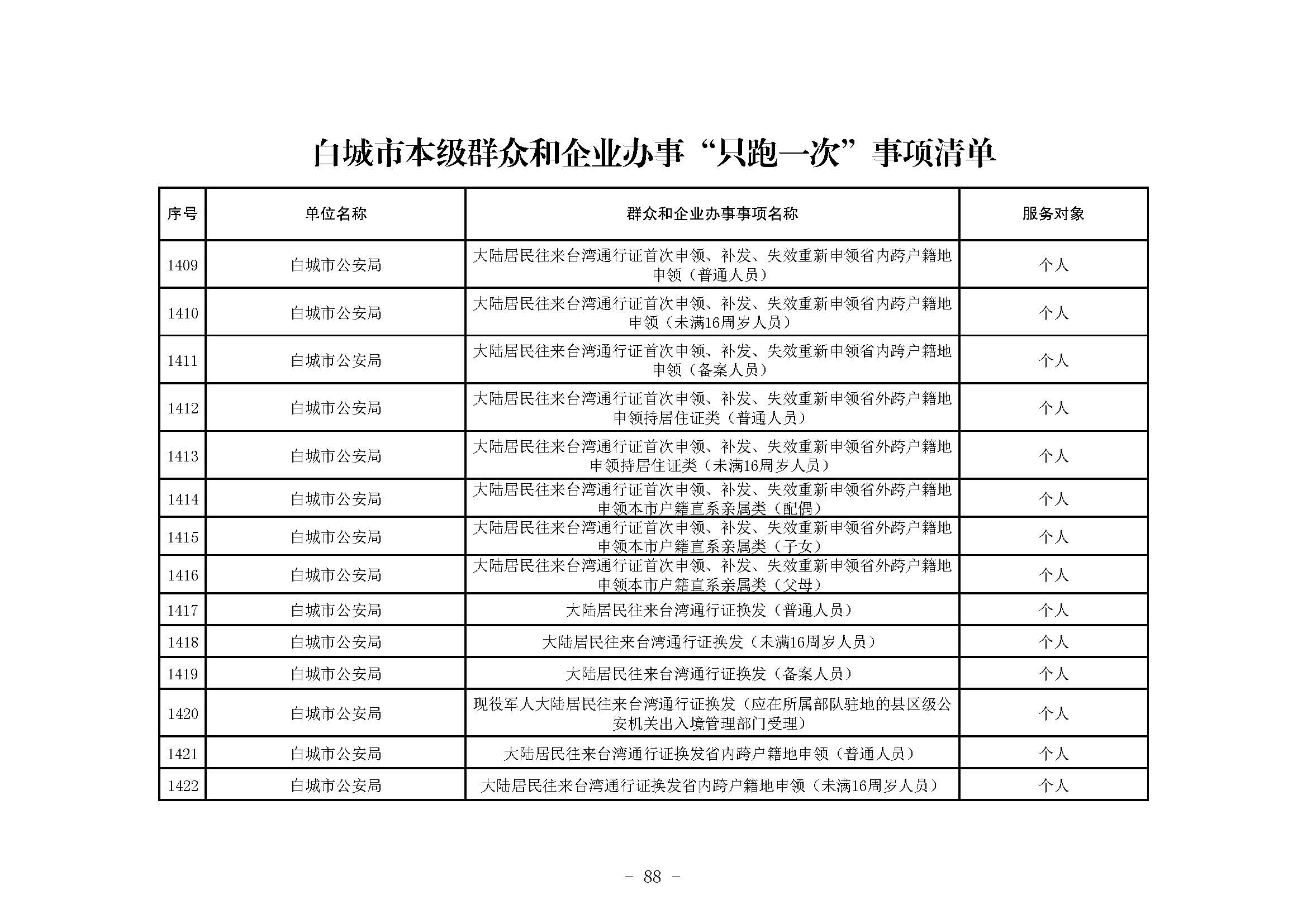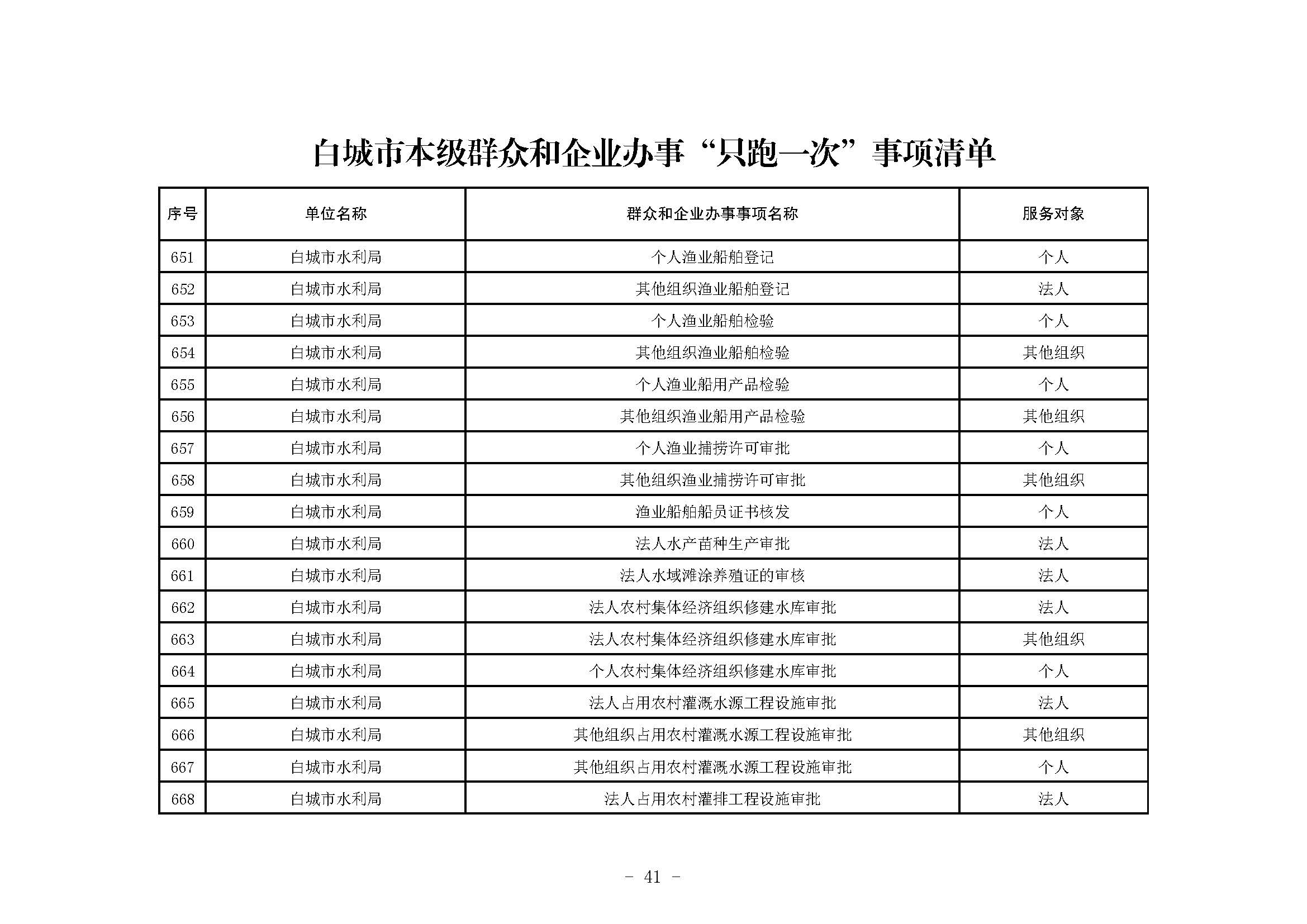 白城市市本级群众和企业办事“只跑一次”事项清单