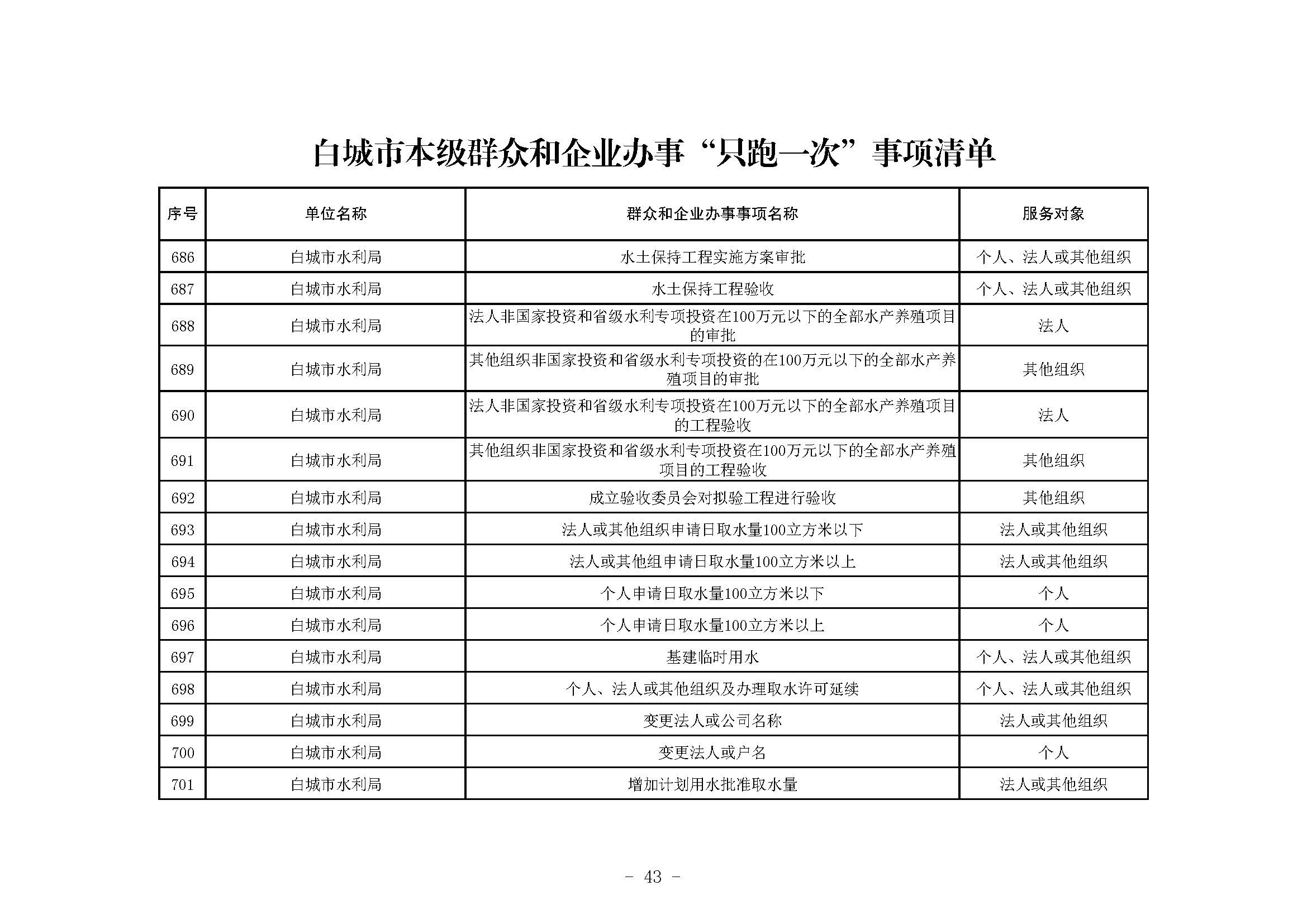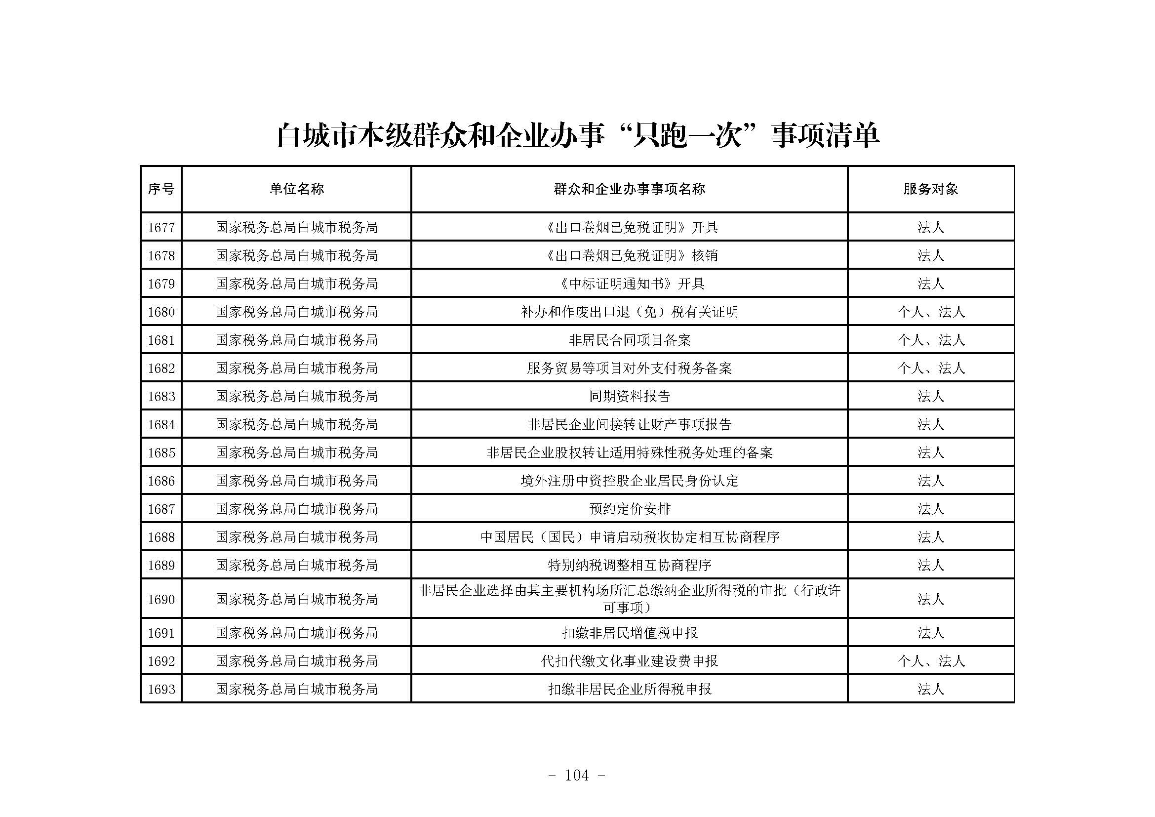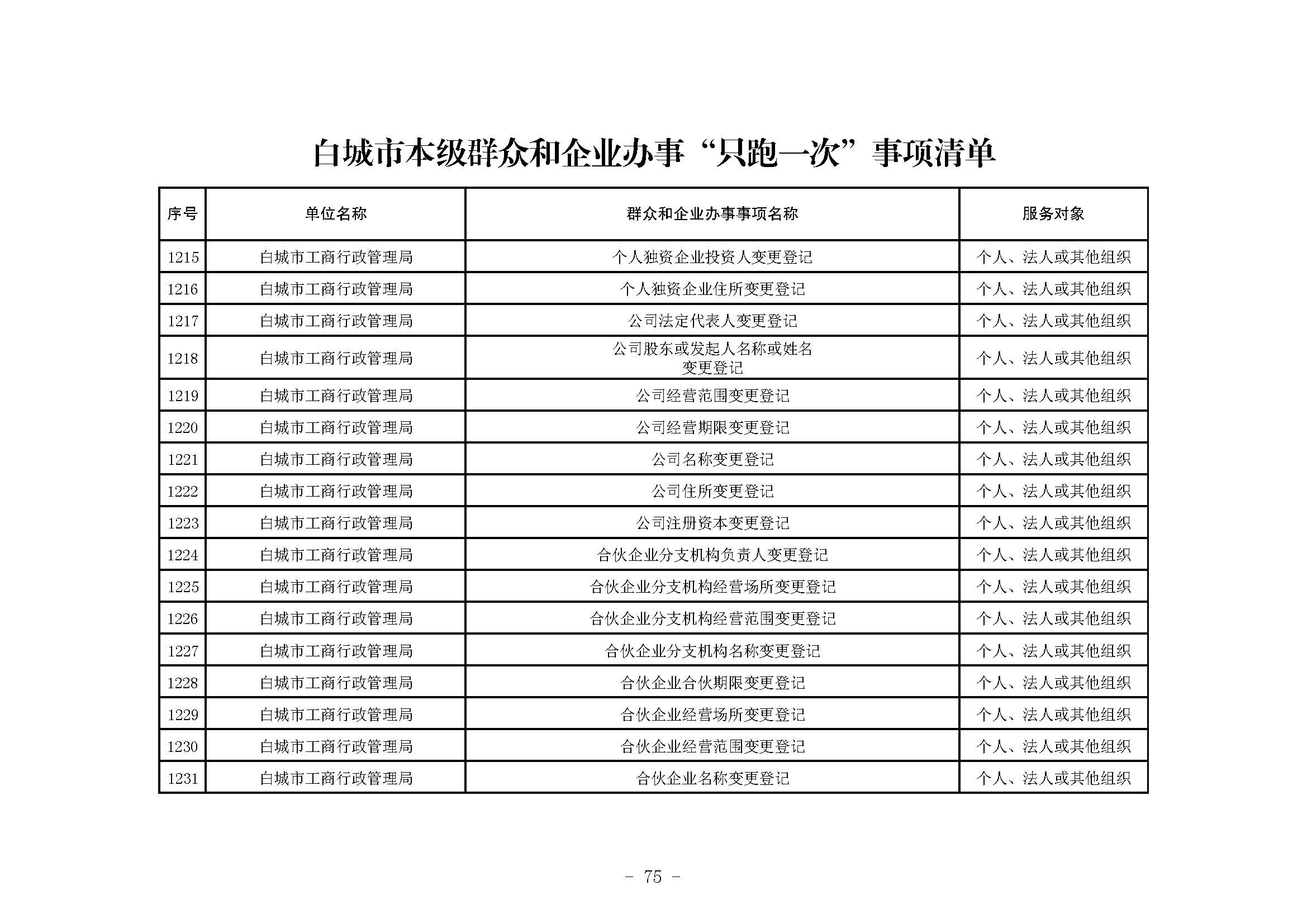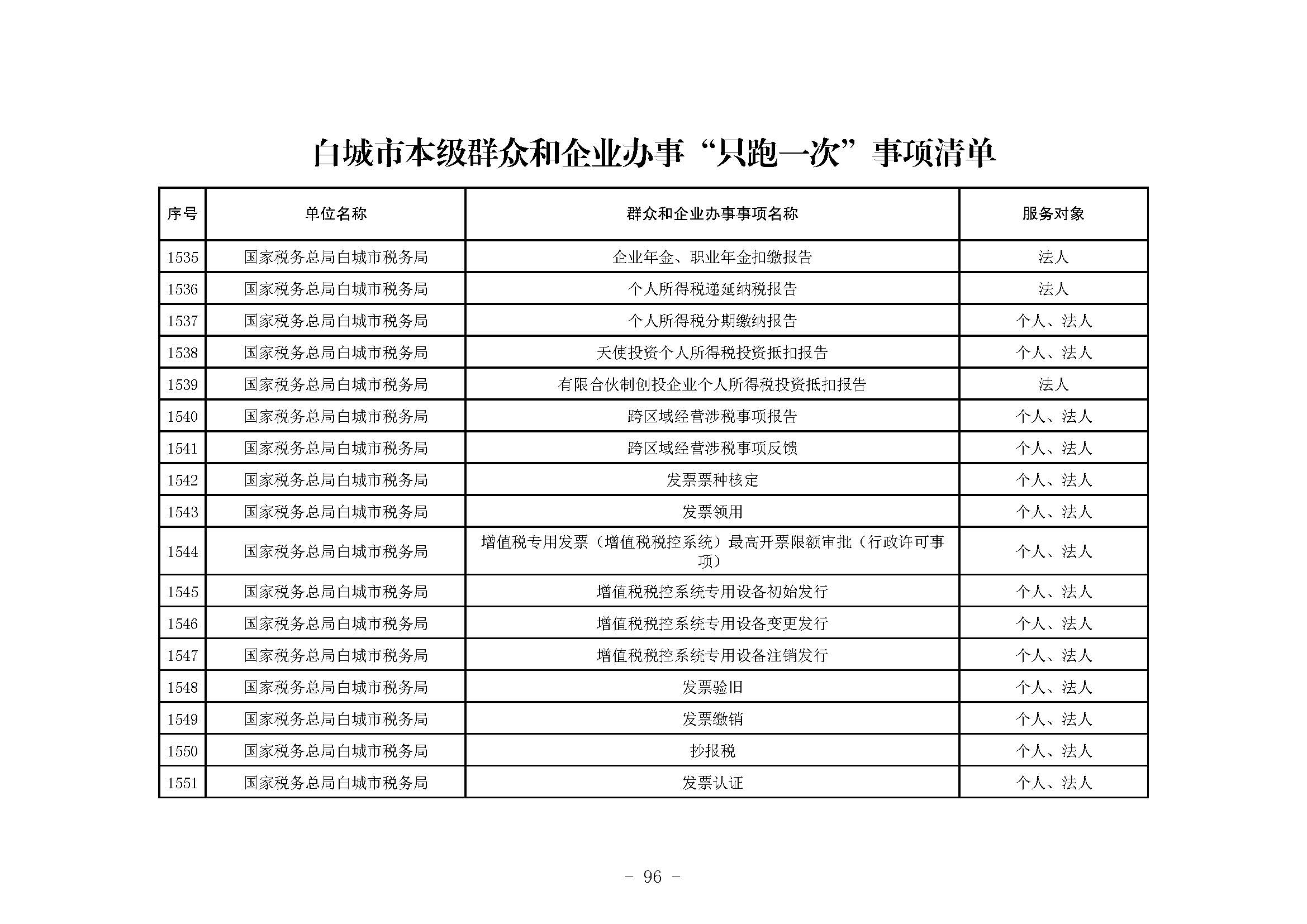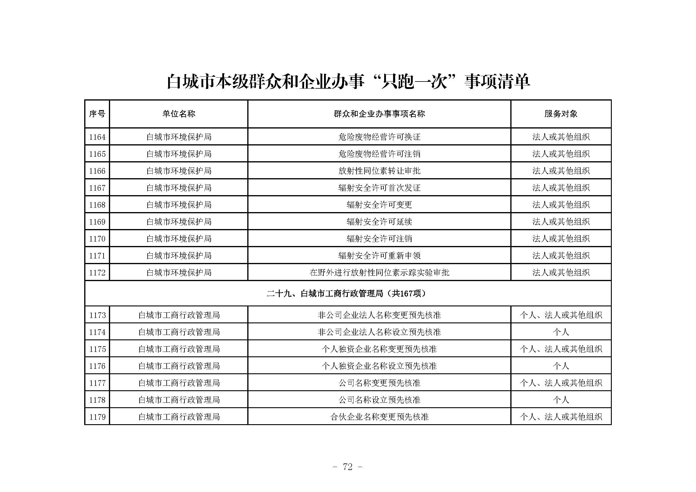 白城市市本级群众和企业办事“只跑一次”事项清单