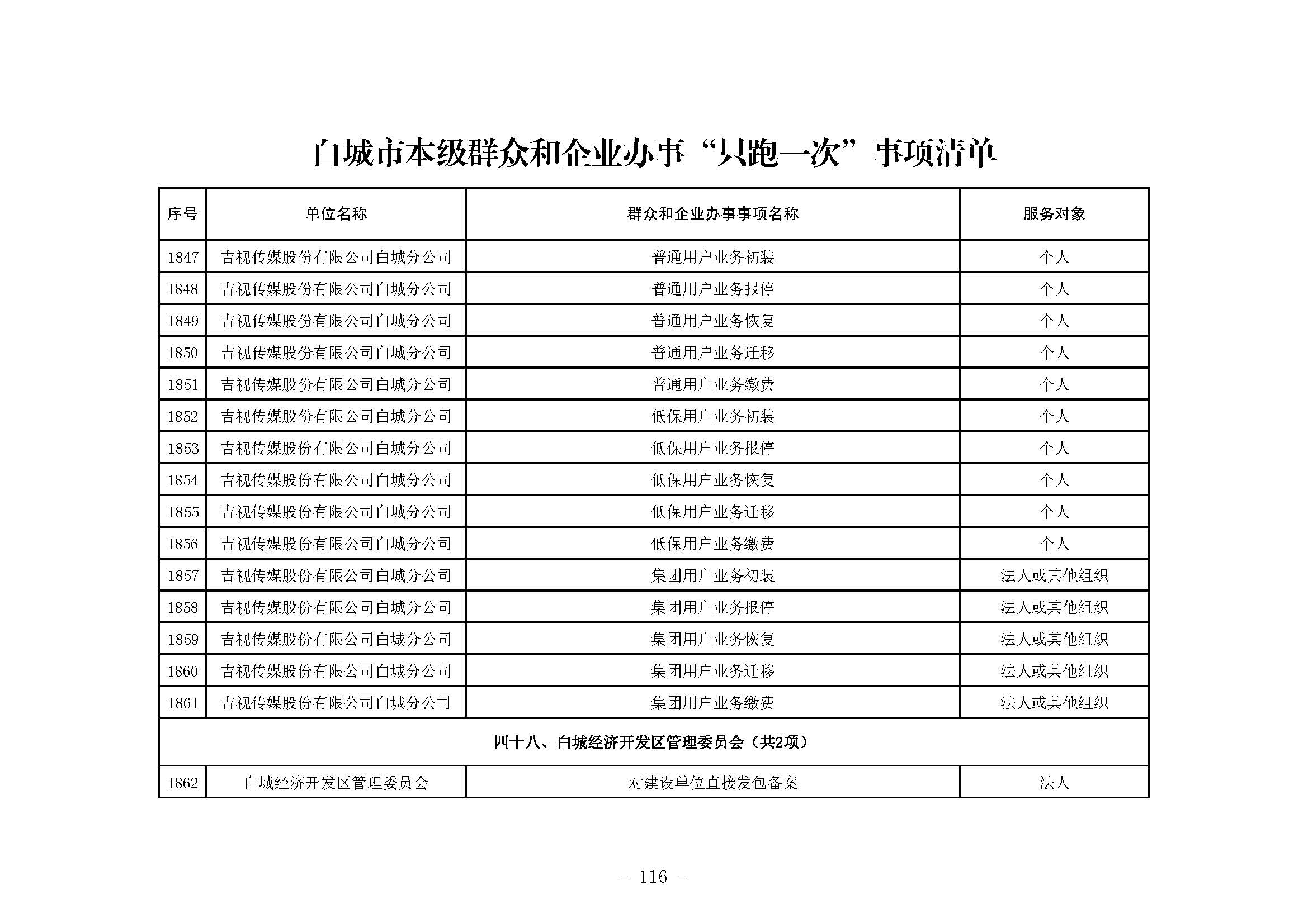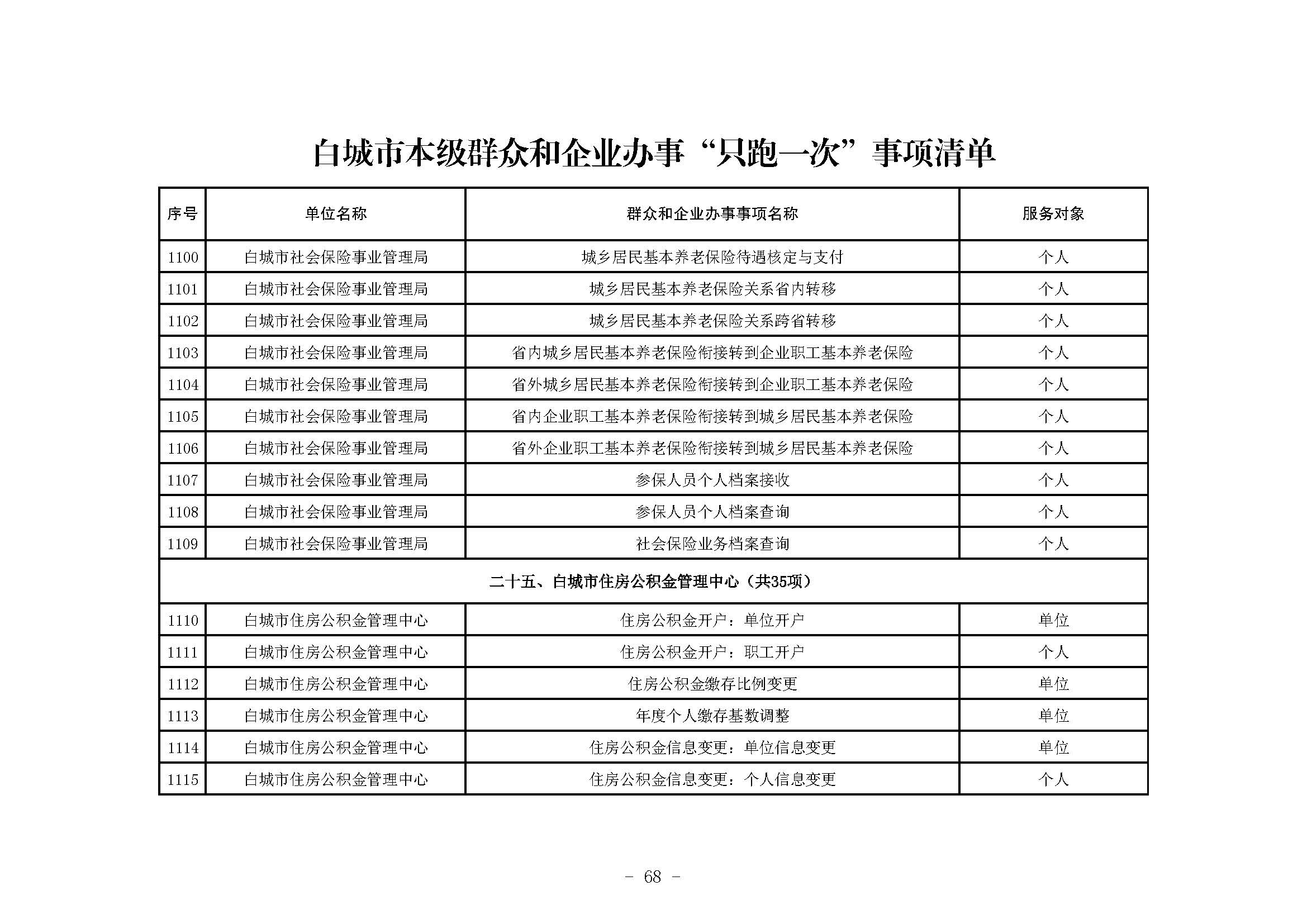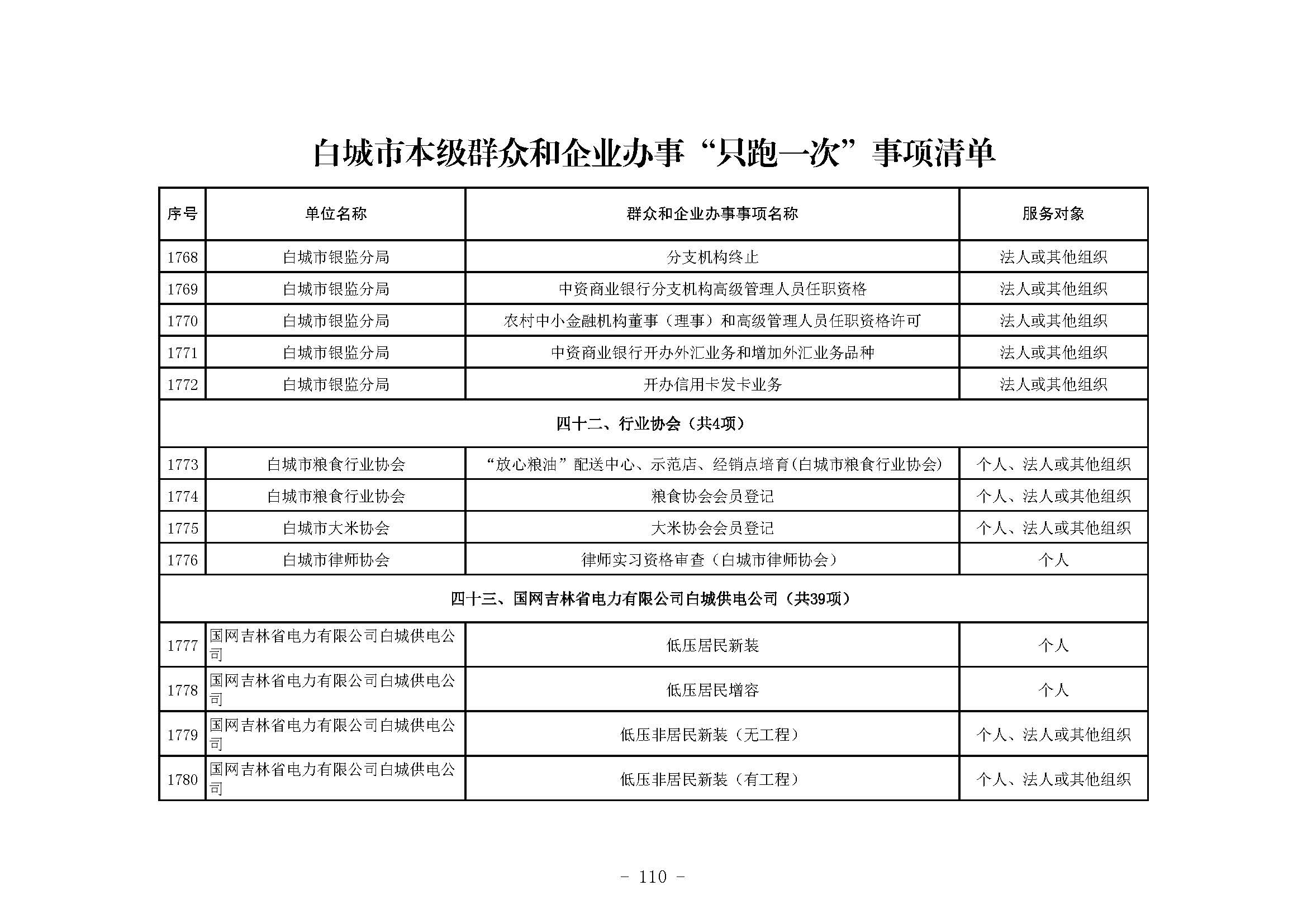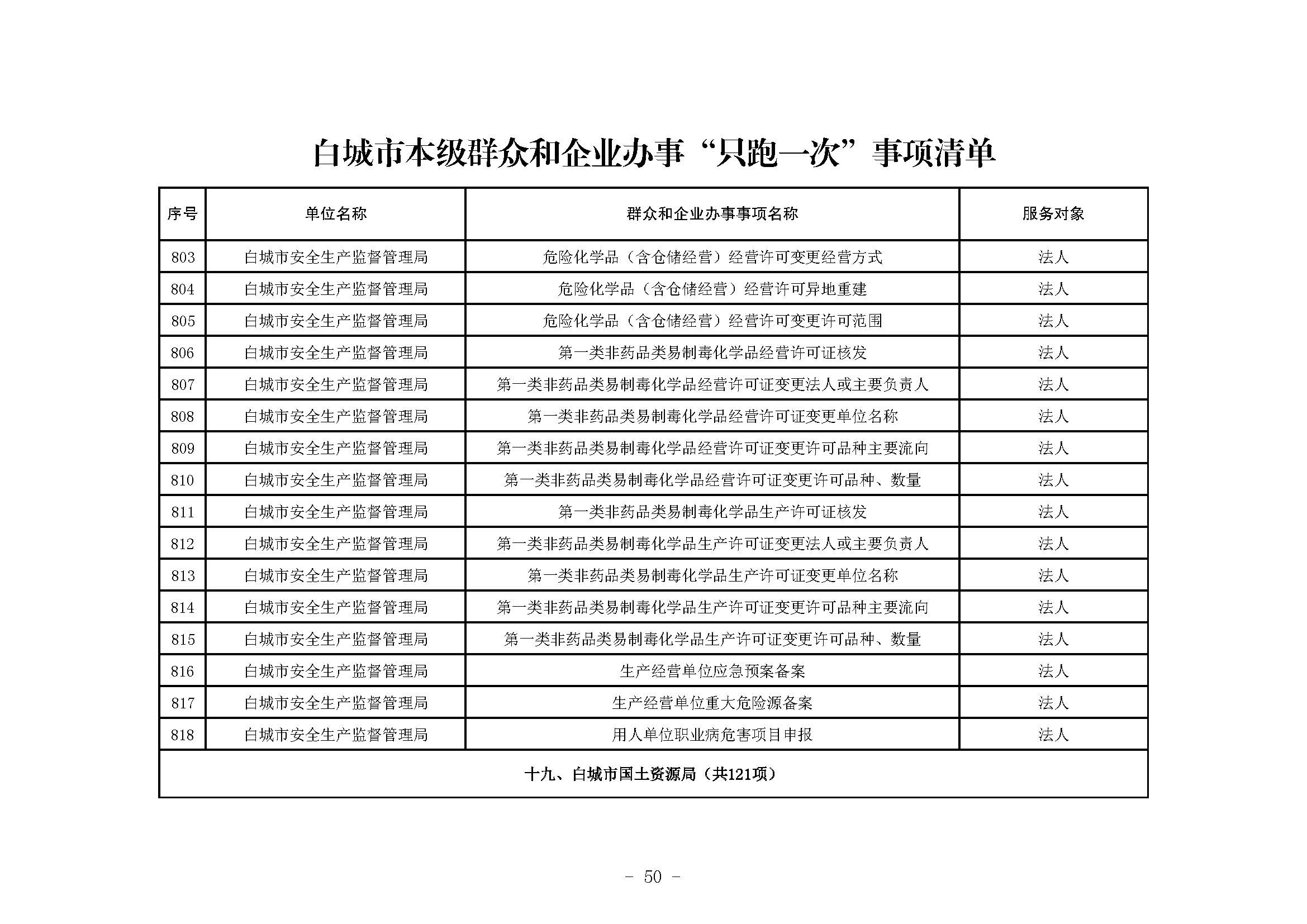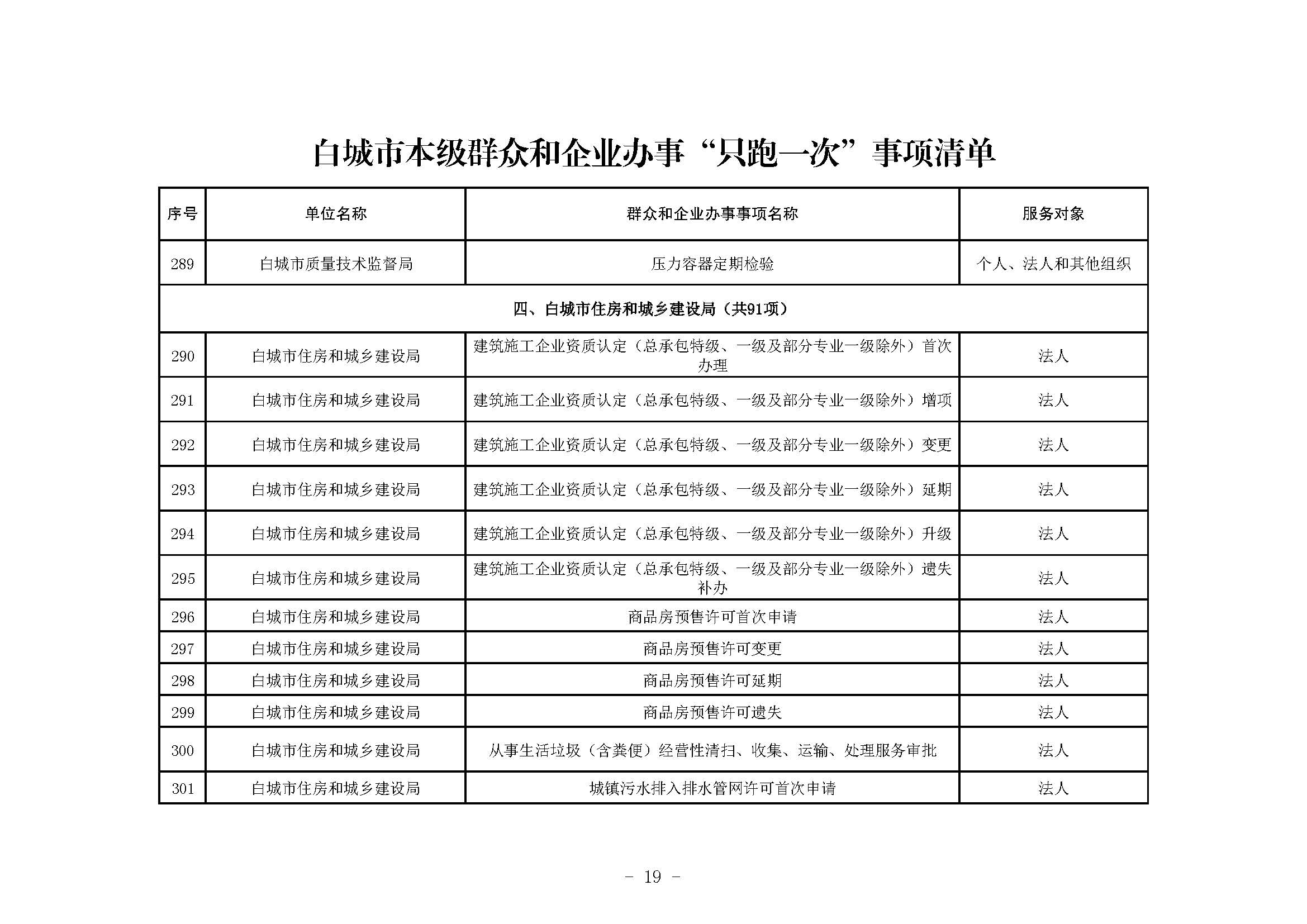 白城市市本级群众和企业办事“只跑一次”事项清单