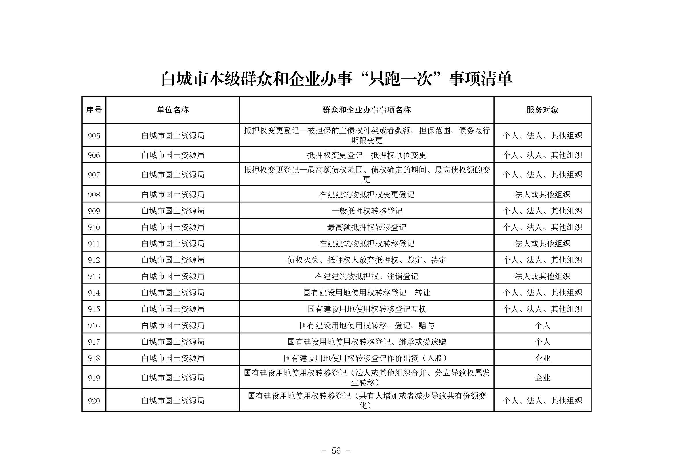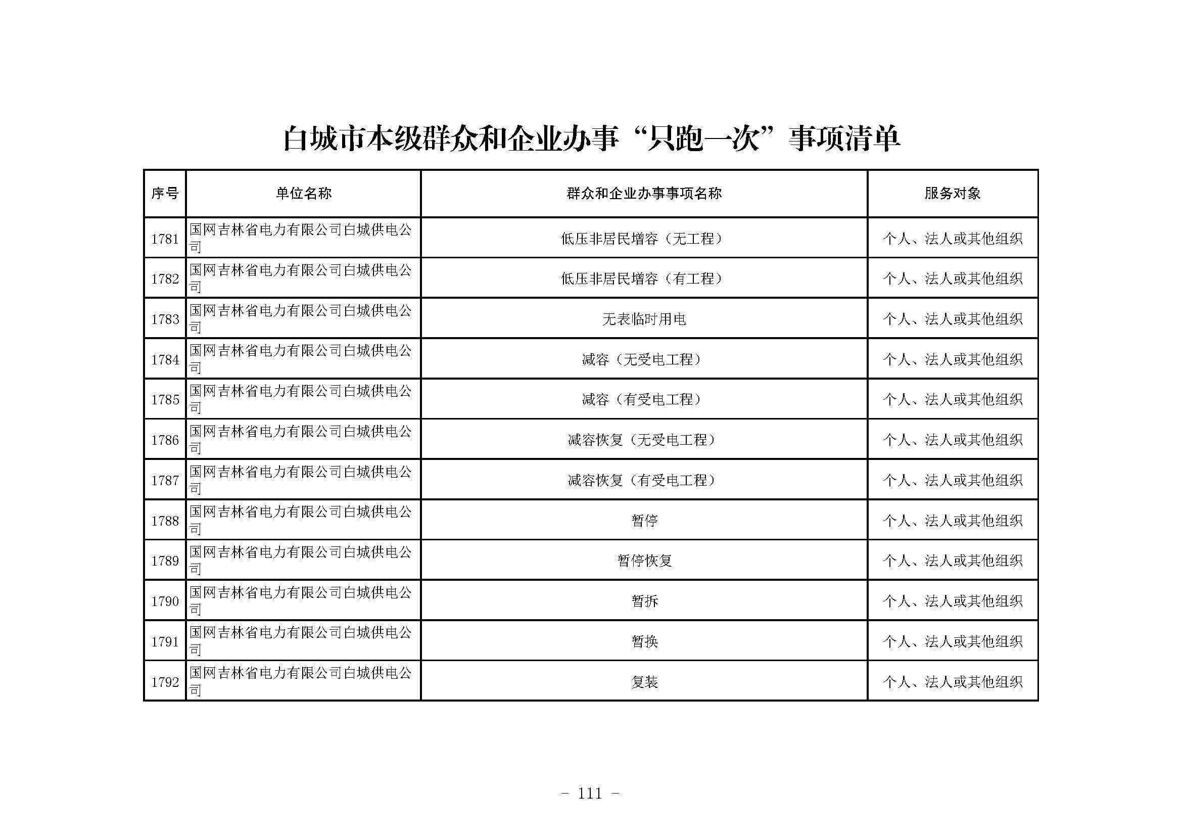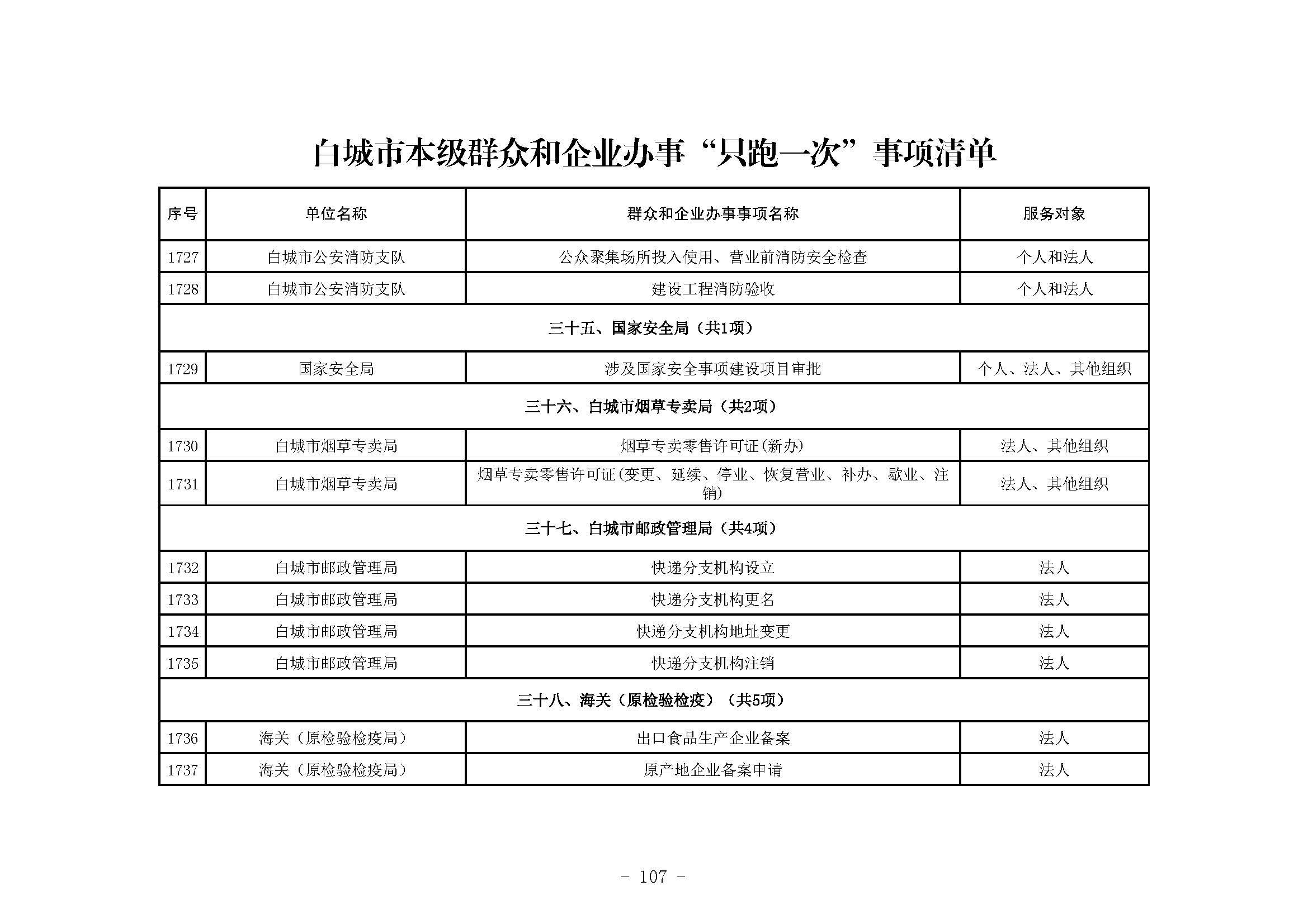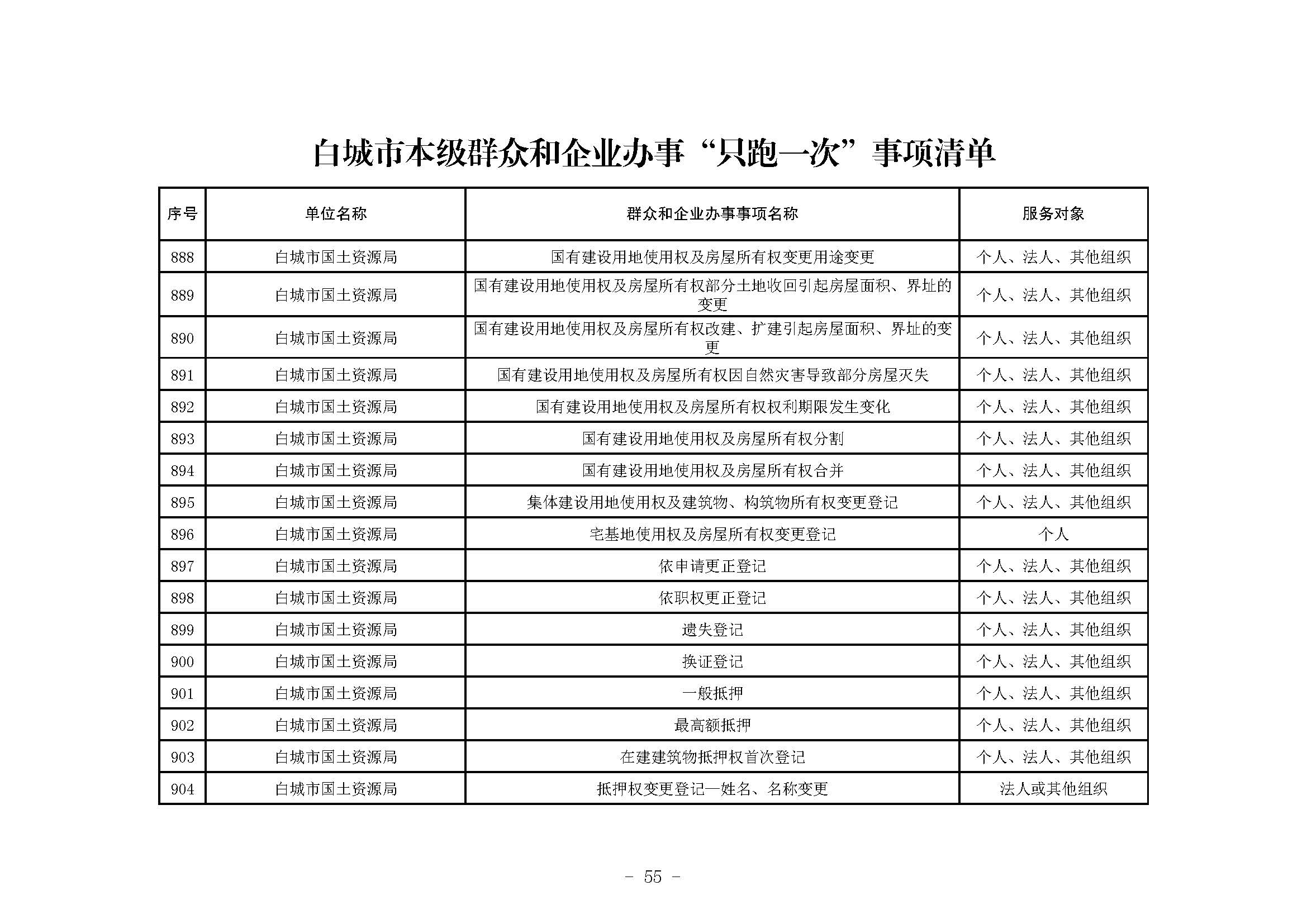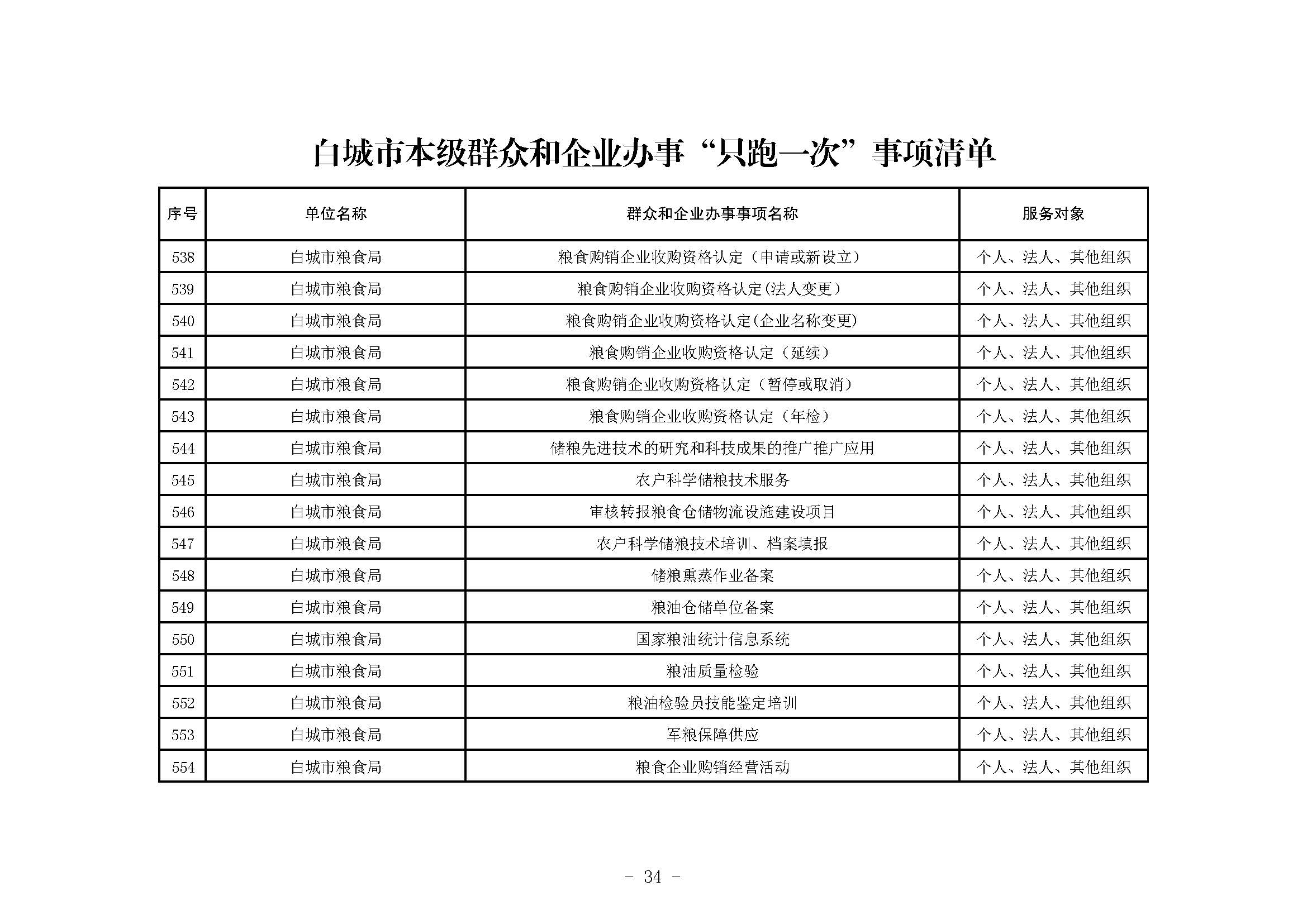 白城市市本级群众和企业办事“只跑一次”事项清单