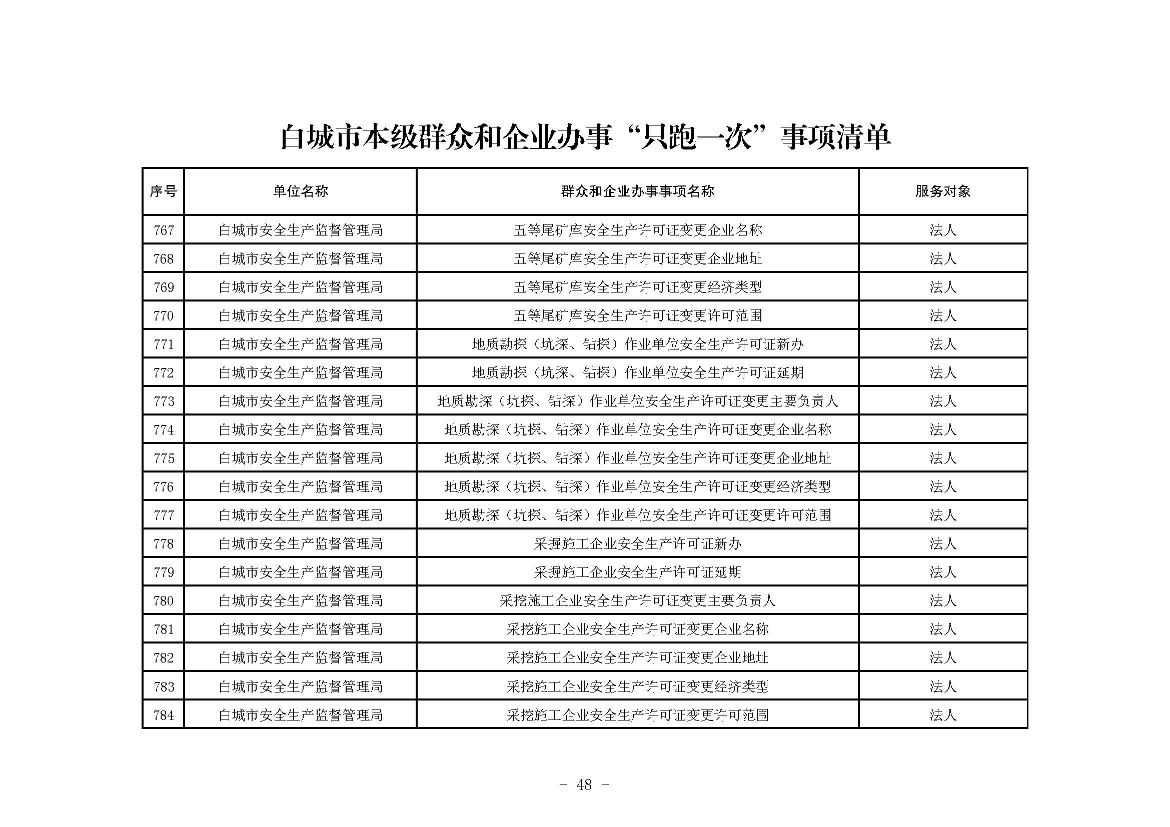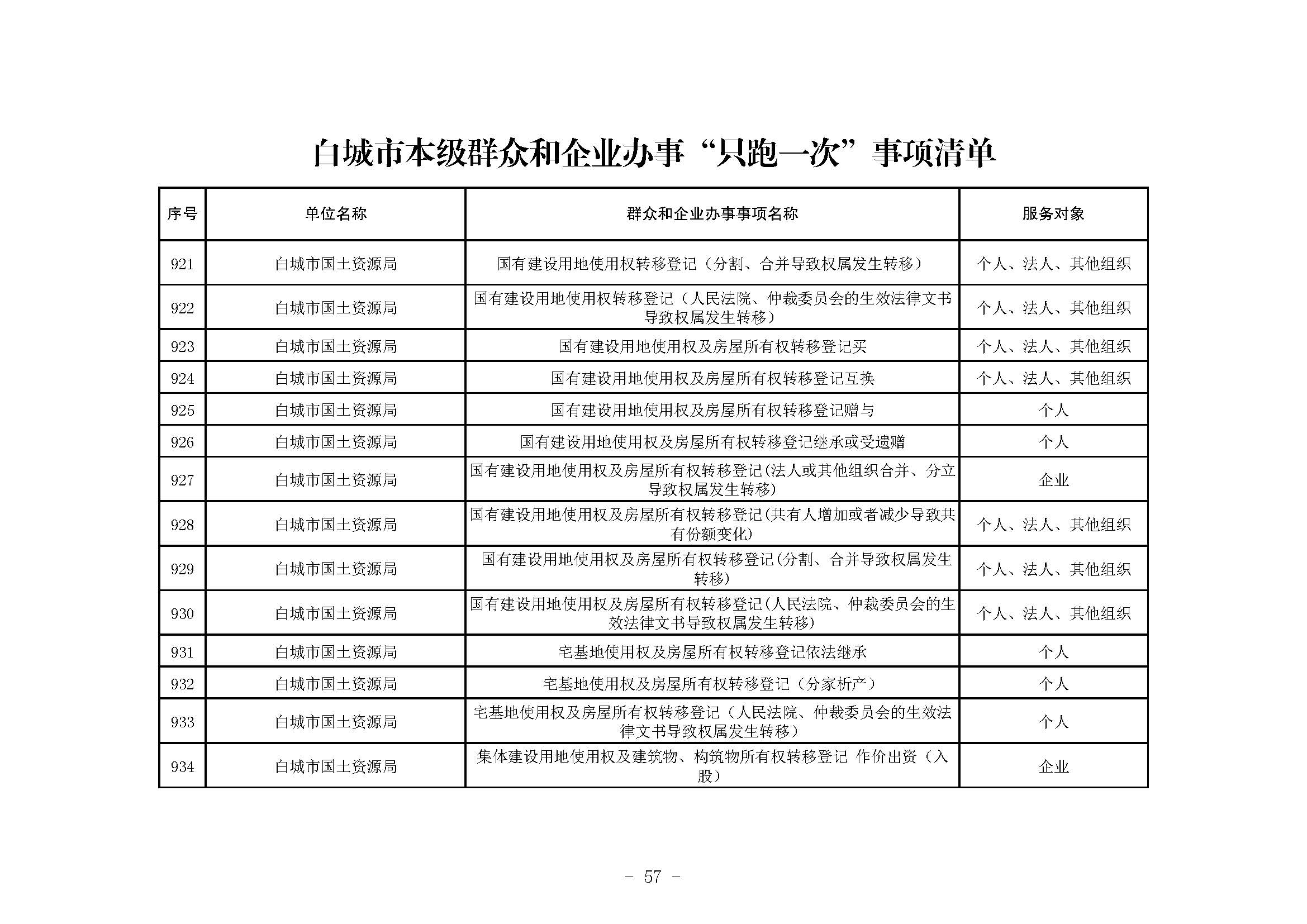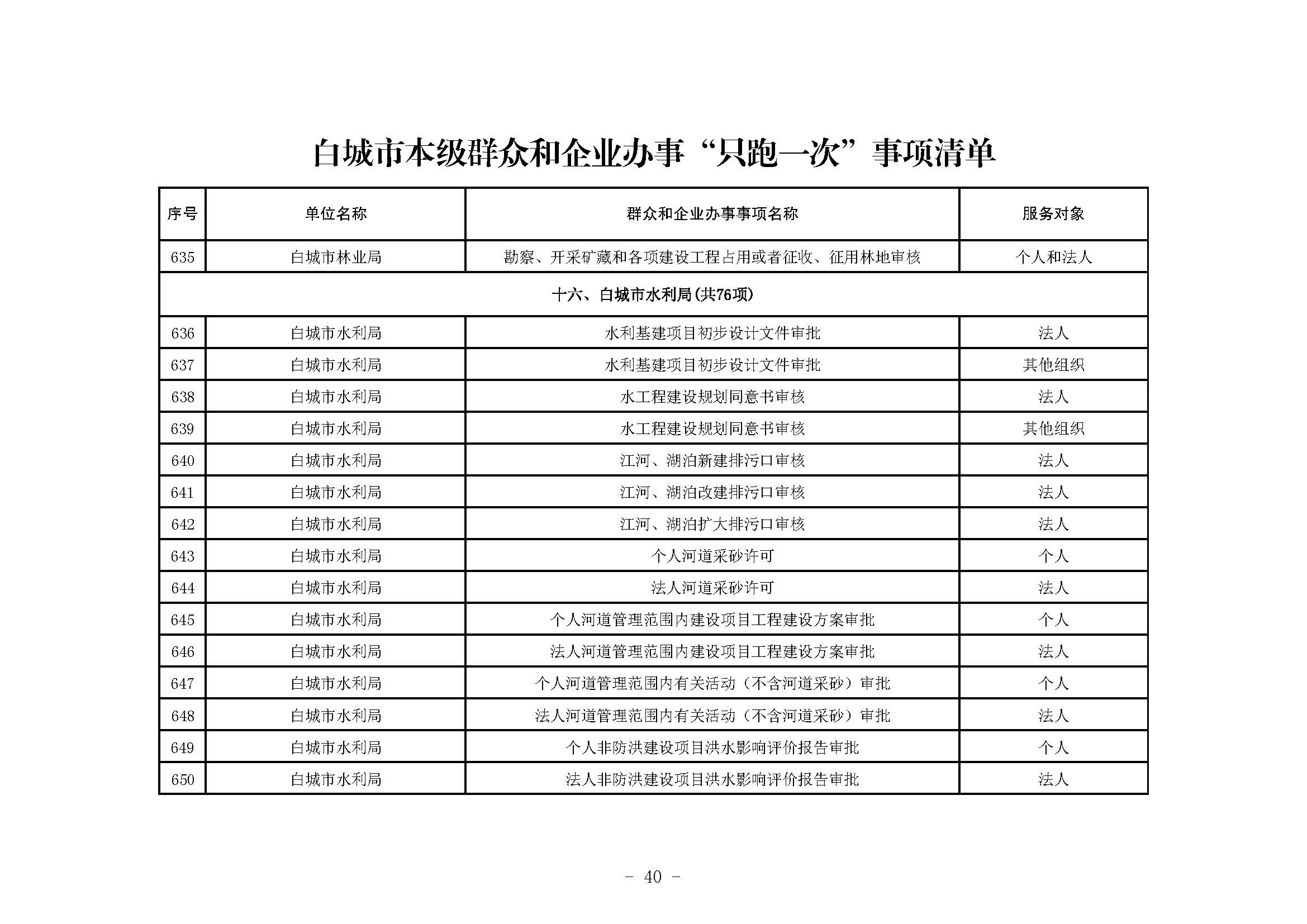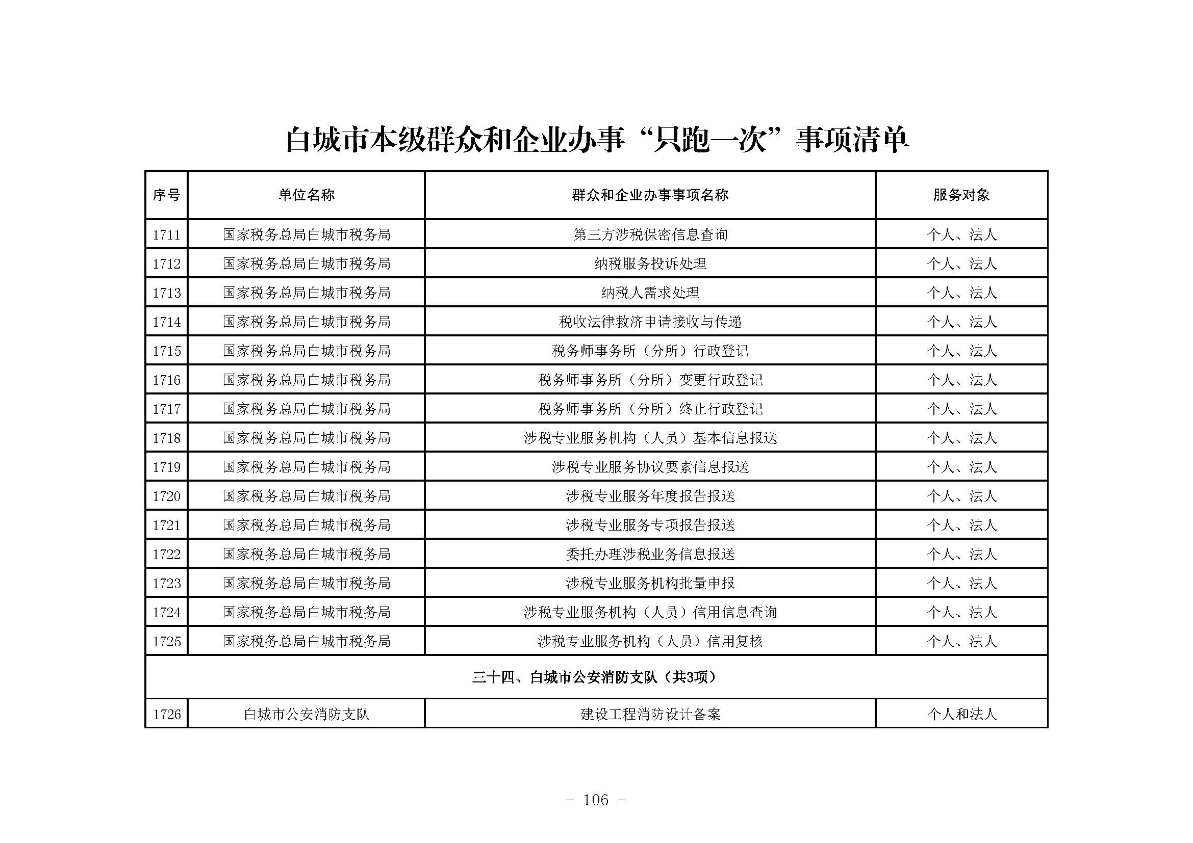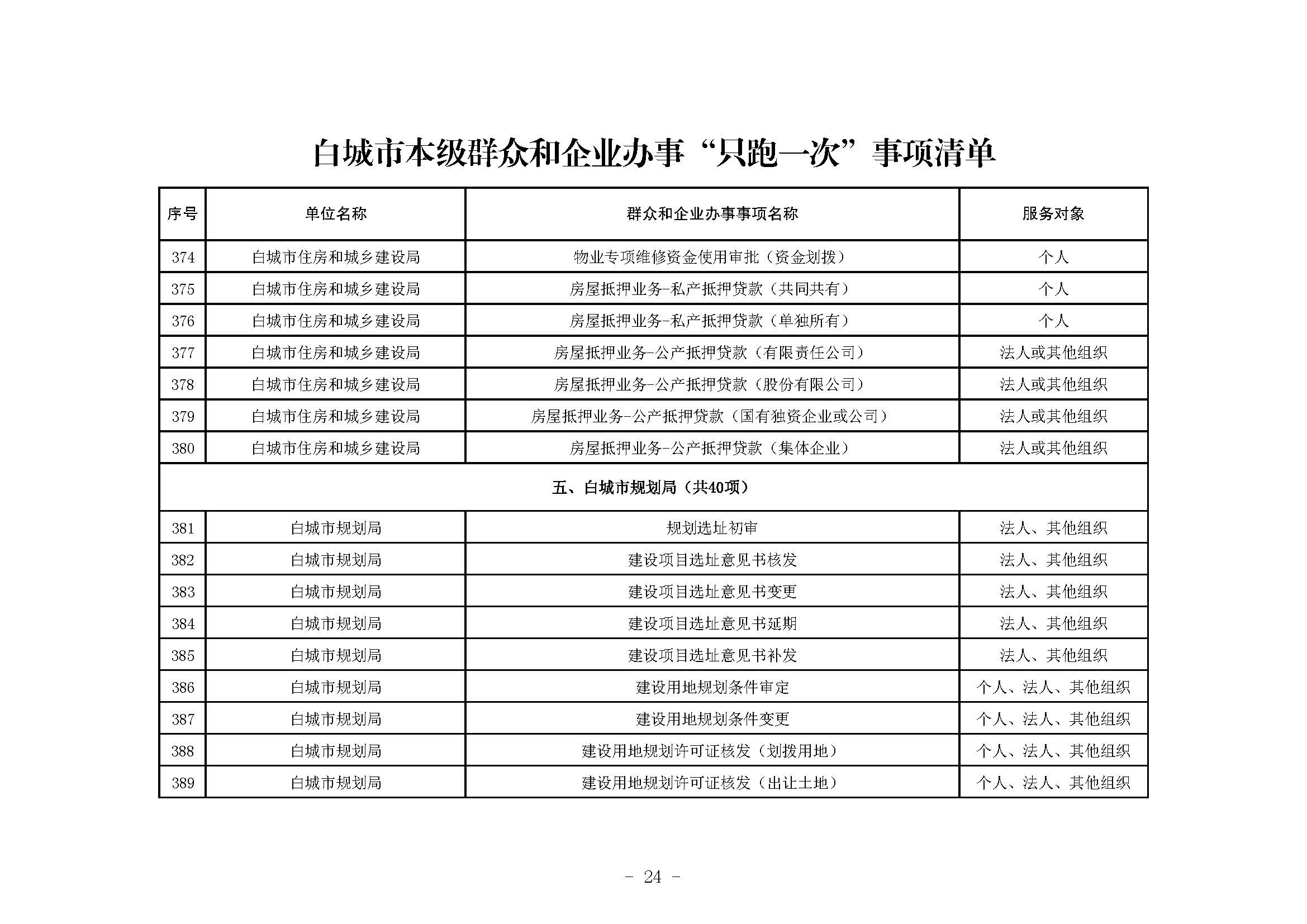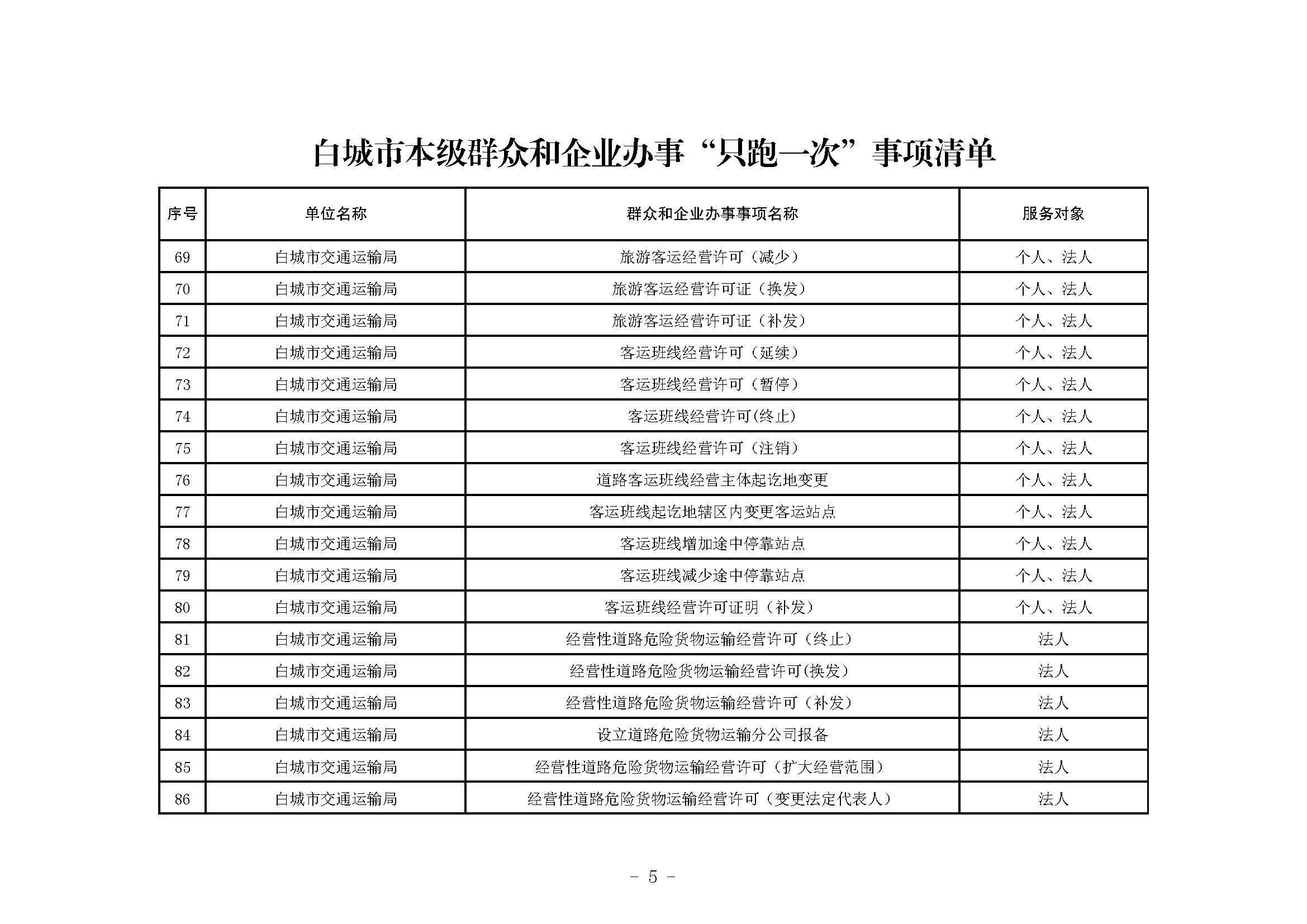 白城市市本级群众和企业办事“只跑一次”事项清单