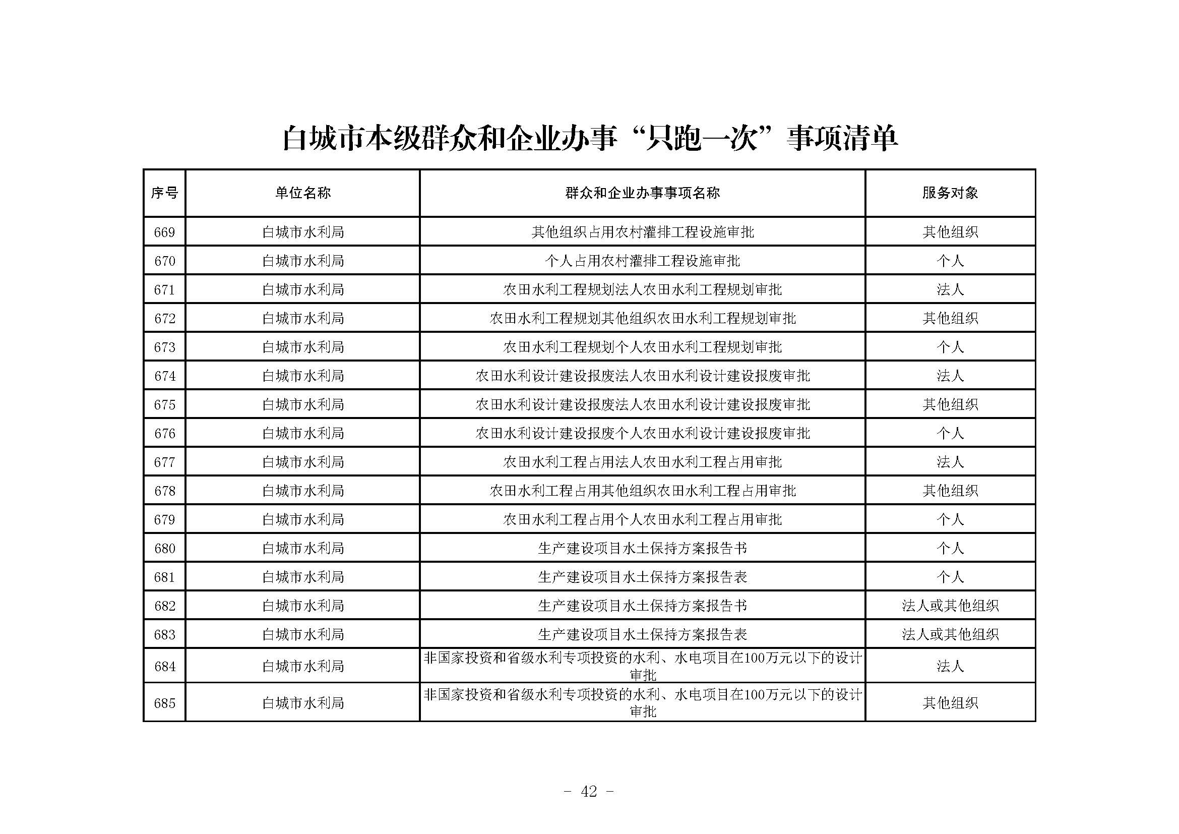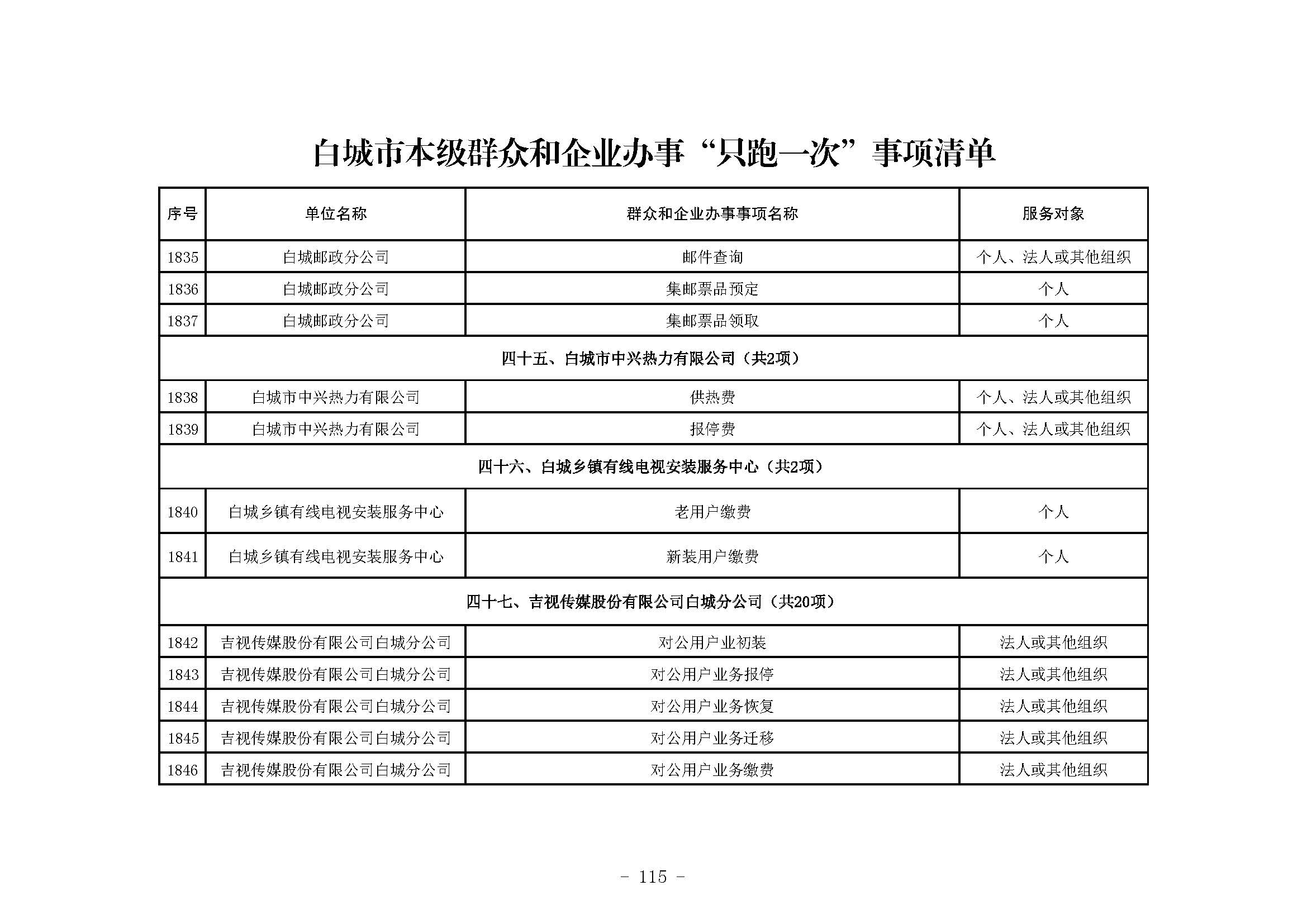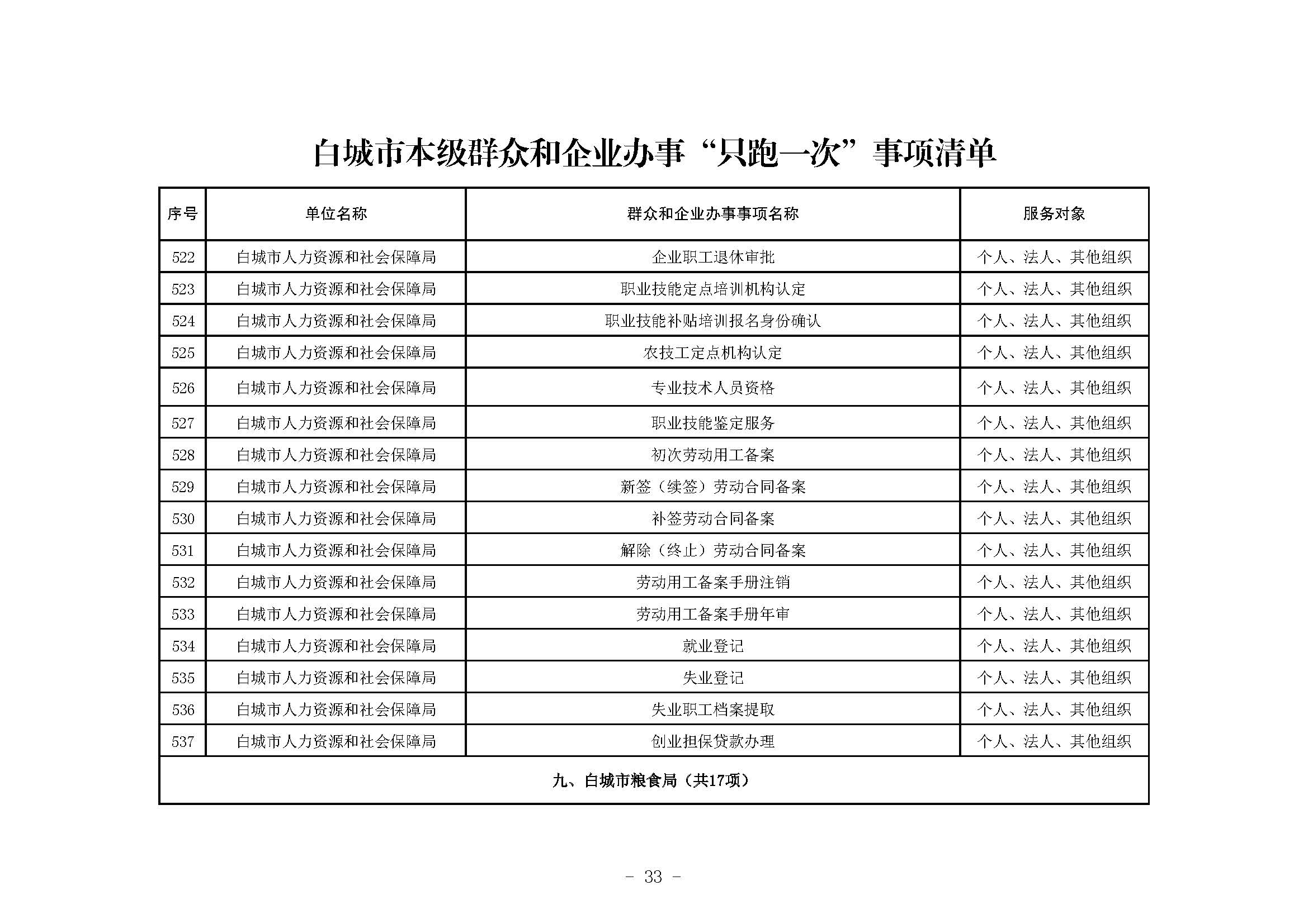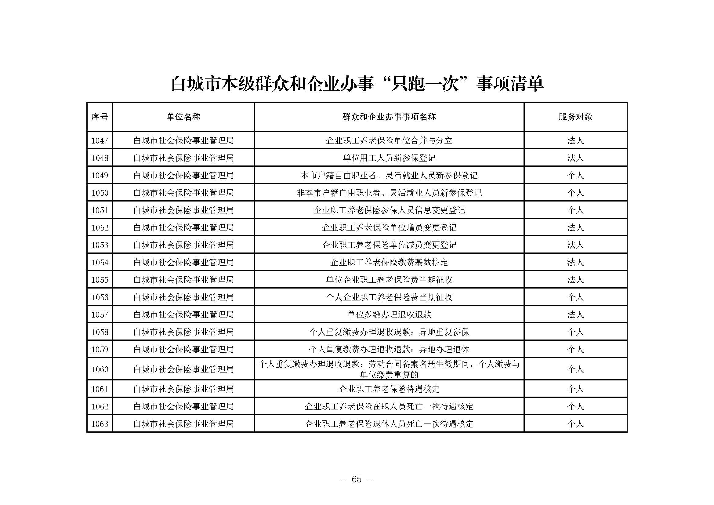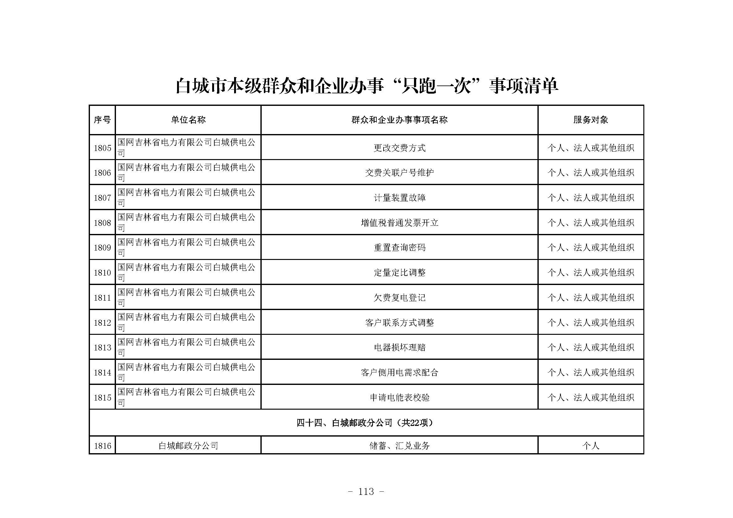 白城市市本级群众和企业办事“只跑一次”事项清单