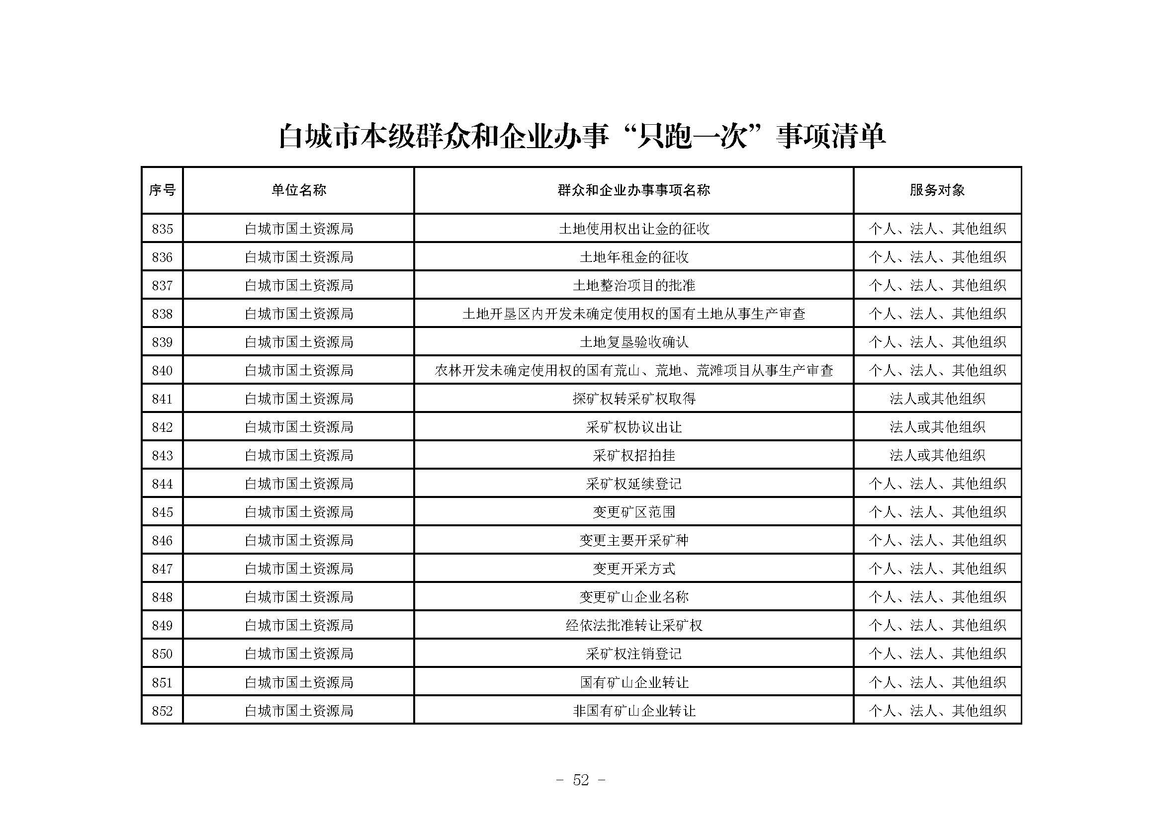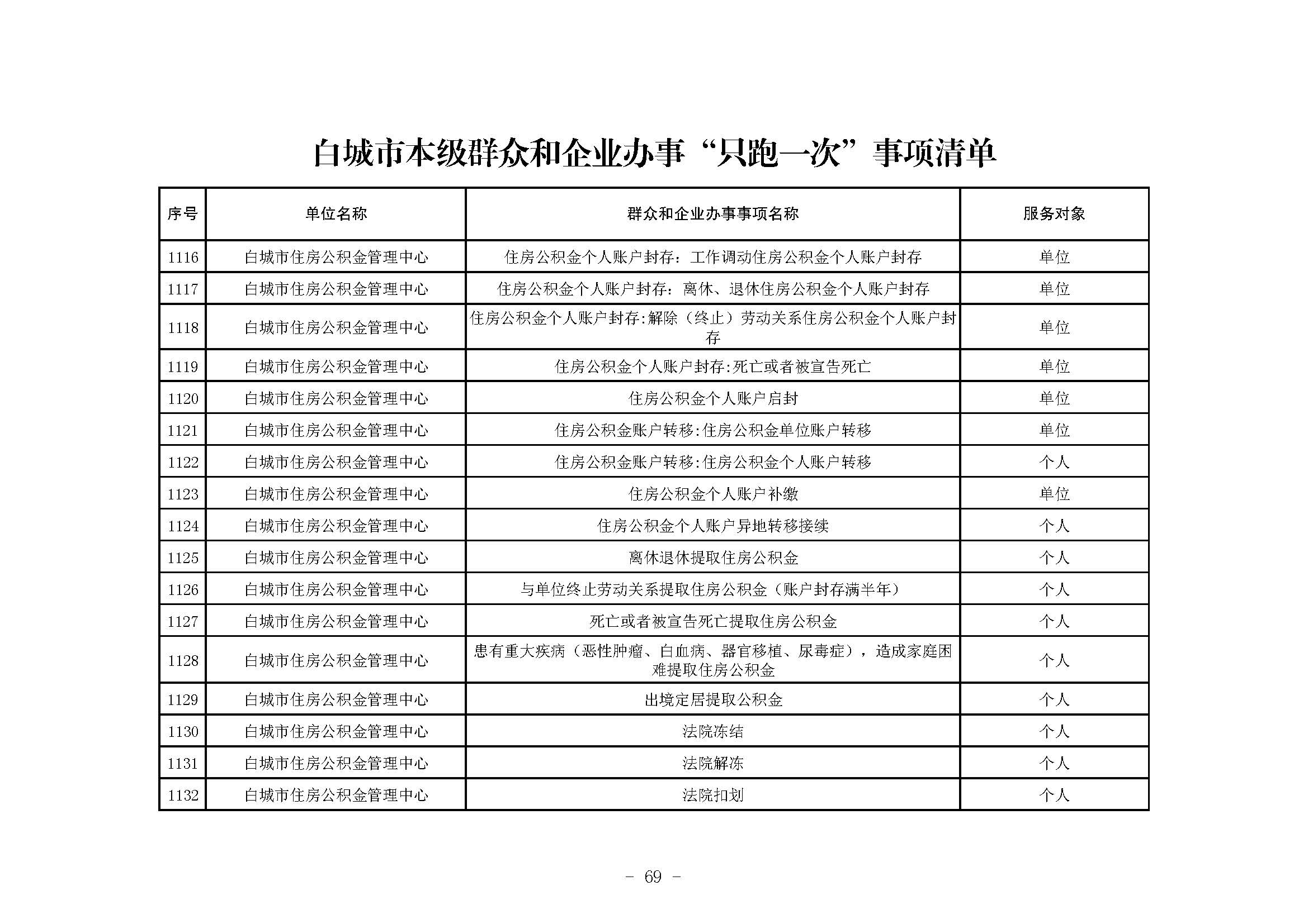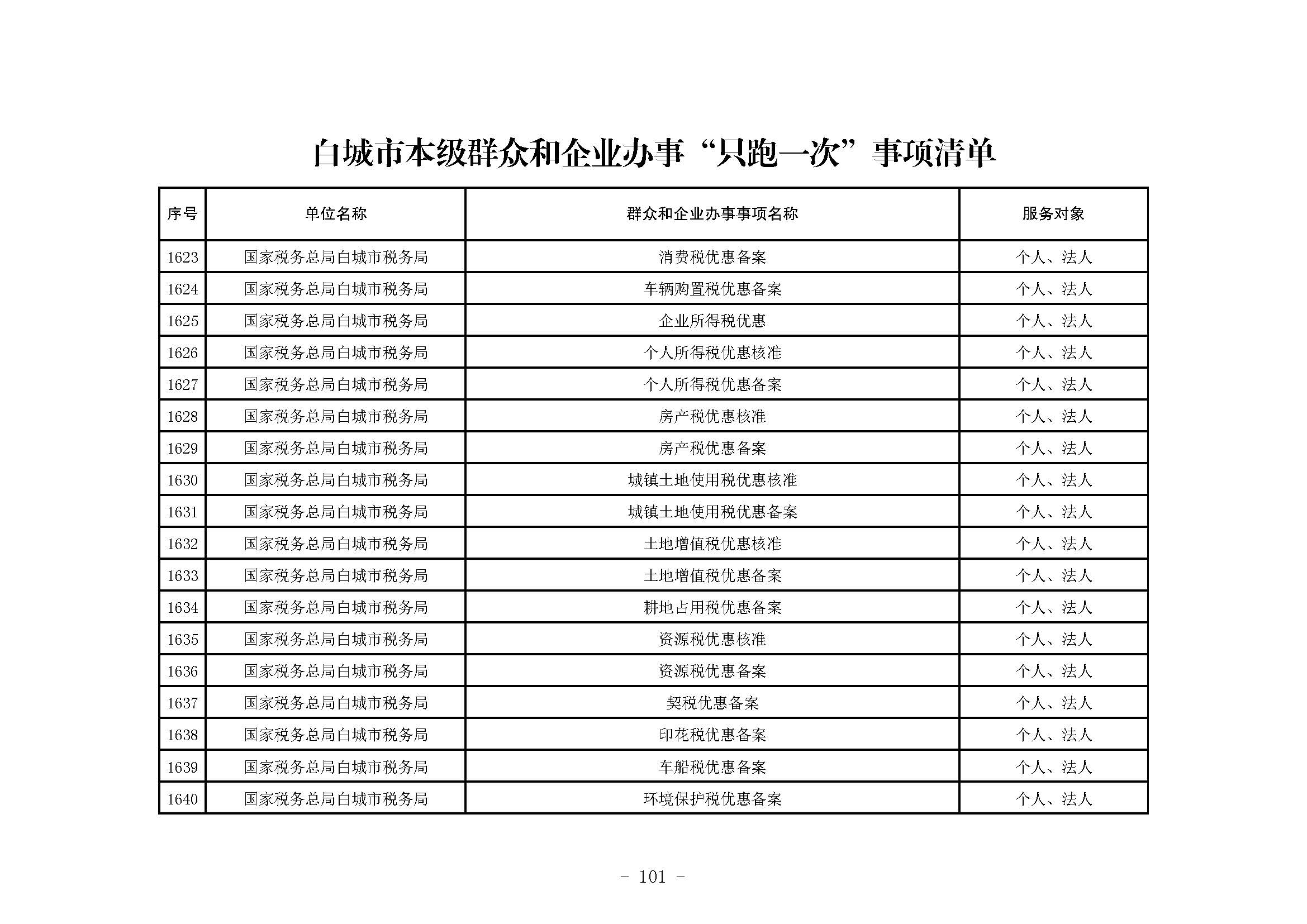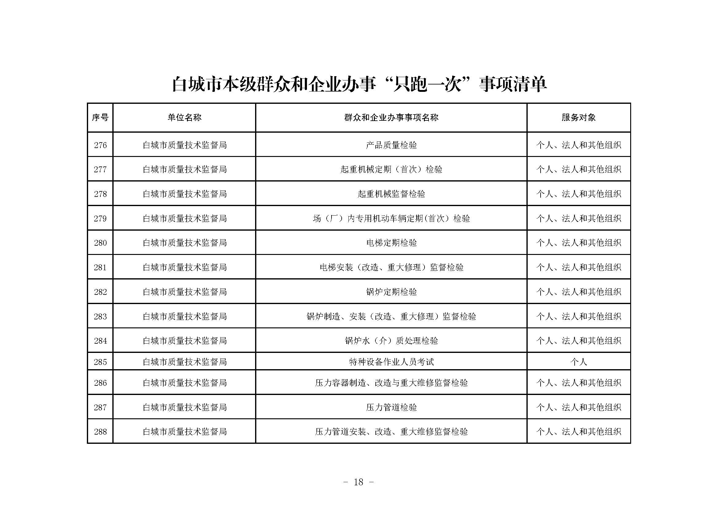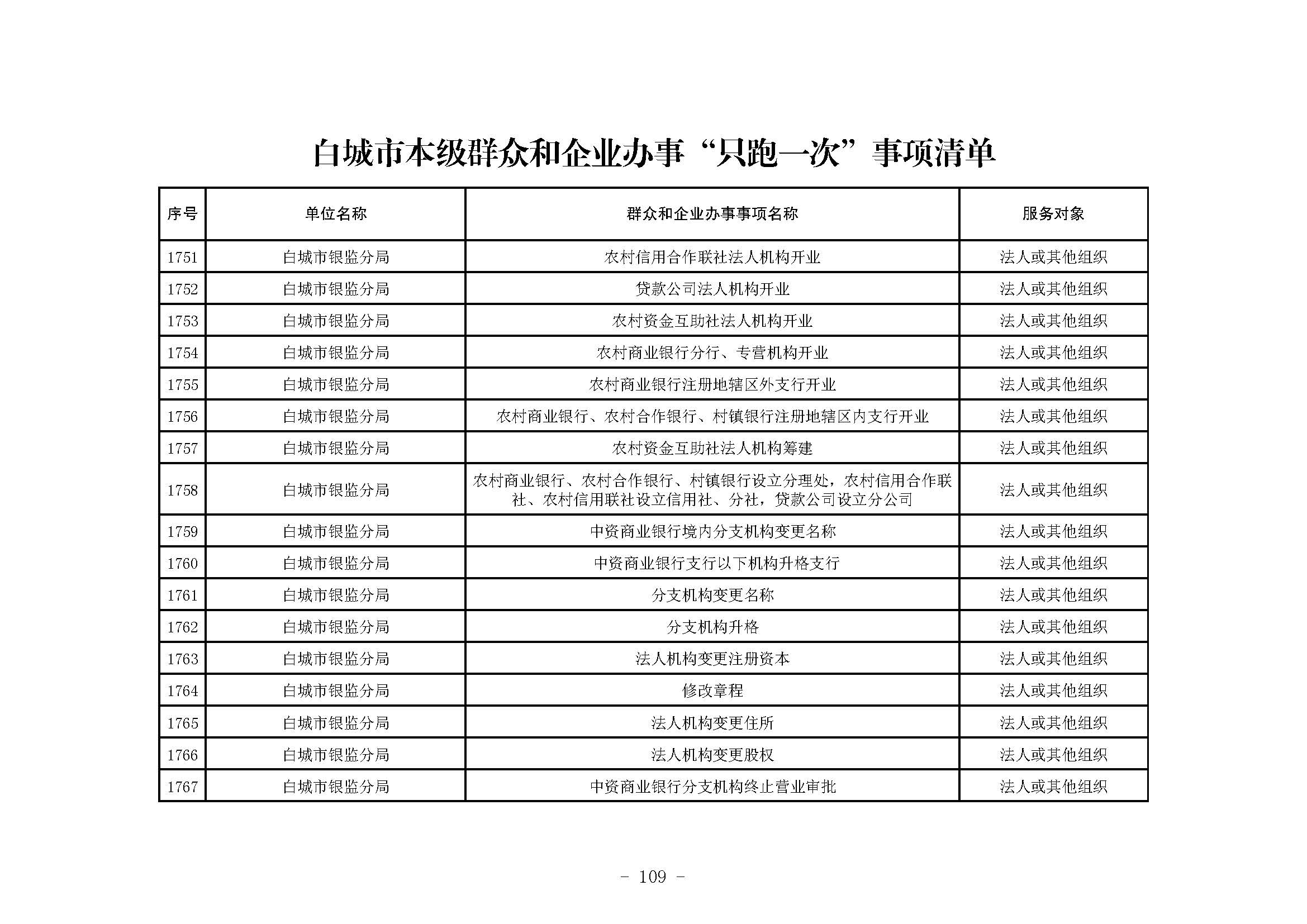 白城市市本级群众和企业办事“只跑一次”事项清单