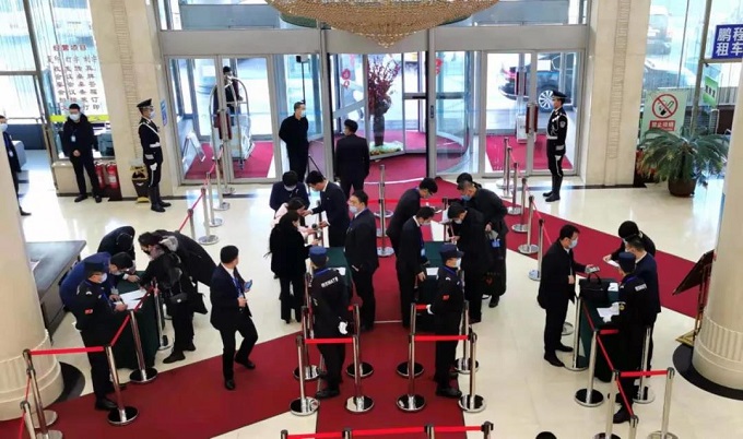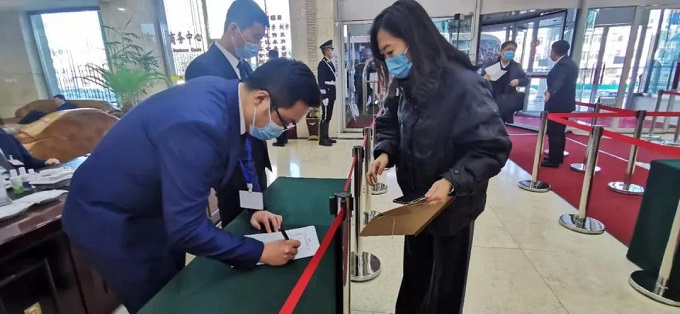 应疫情防控工作要求,今年会场内外做了大量细致安排,各项防疫措施落实精准到位。所有代表需要佩戴口罩,出示个人身份证件、核酸检测报告、吉祥码、行程码,经现场测温后进入代表驻地,按照指引标识分别到各代表团报到处办理报到手续。