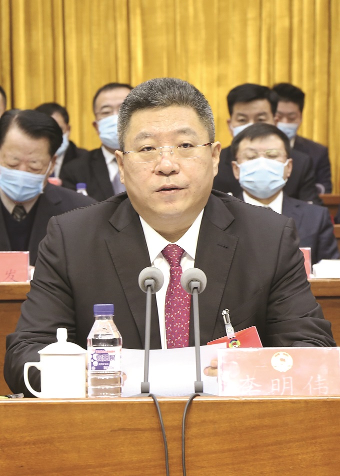 市委书记李明伟在政协白城市第七届委员会第一次会议上发表讲话。