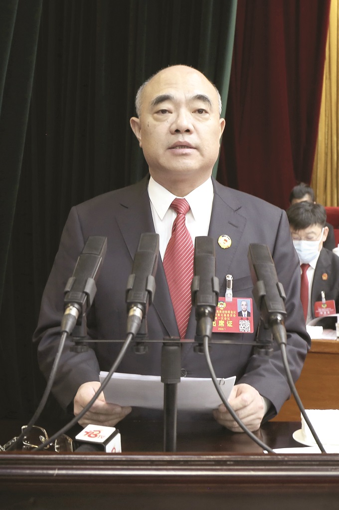 符文受政协白城市第六届委员会常务委员会委托,向大会作政协白城市第六届委员会常务委员会关于提案工作情况的报告。五年来,六届市政协共收到提案1123件、立案809件,提案议题广泛、内容丰富、针对性强,具有鲜明的时代特征和政协特色,办理中得到了广泛认同和认真采纳落实,为推动全市经济社会发展发挥了积极作用。