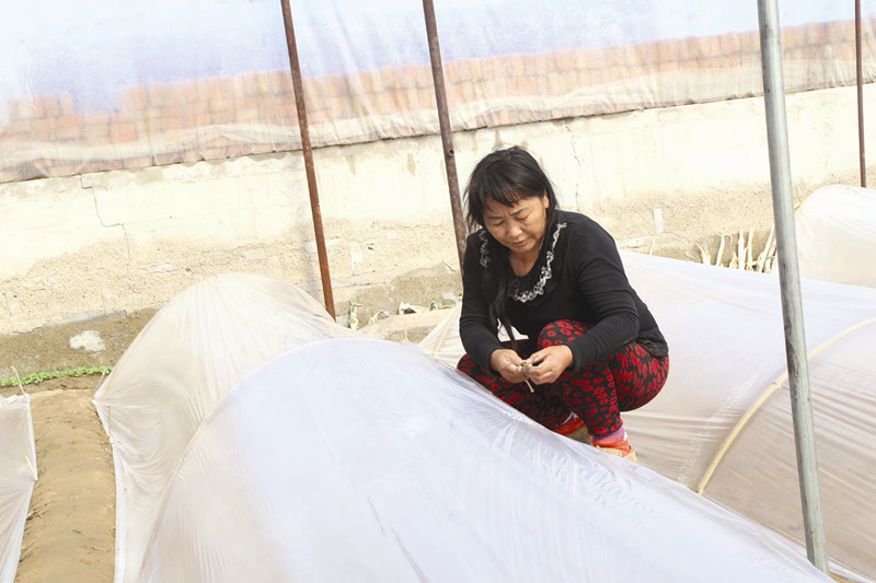 通榆县瞻榆镇西关村农民在整理大棚。