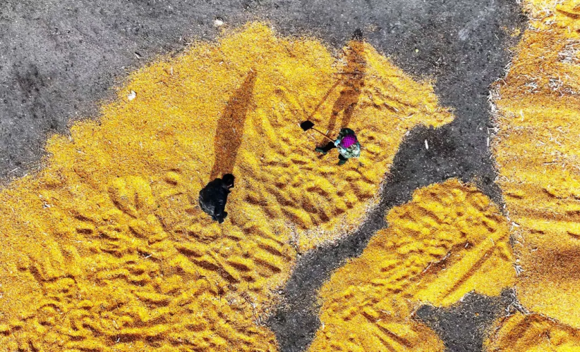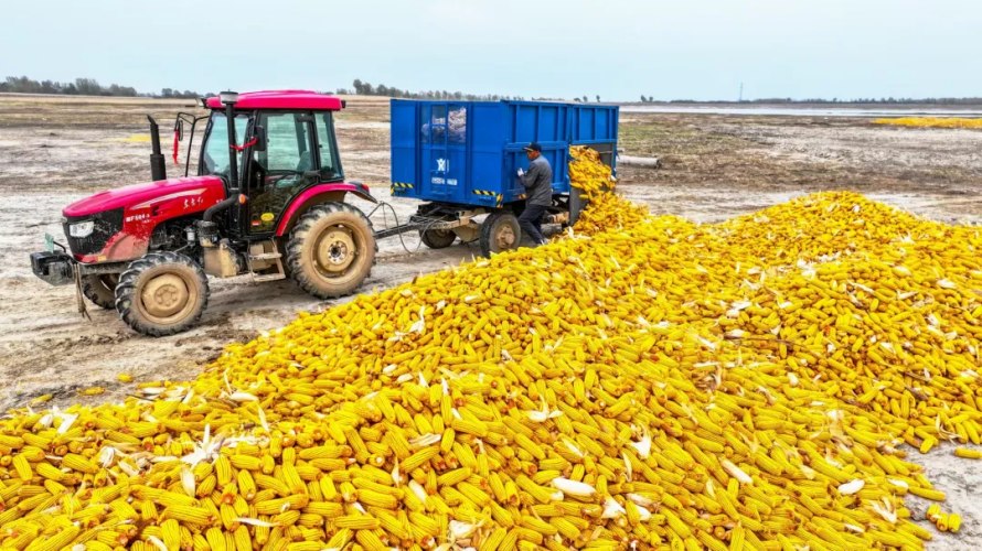 刚刚收获的各种农作物在阳光下闪烁着各色光芒,田间地头稻谷飘香,