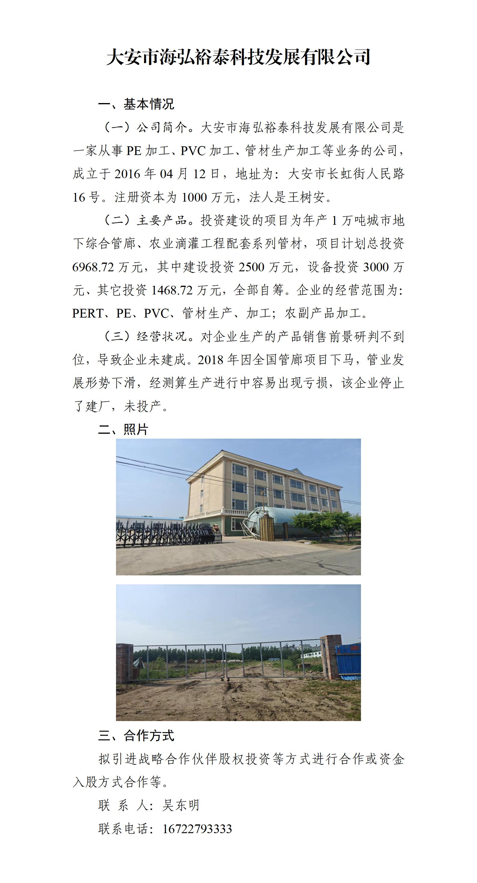 闲置资产招商--大安市海弘裕泰科技发展有限公司