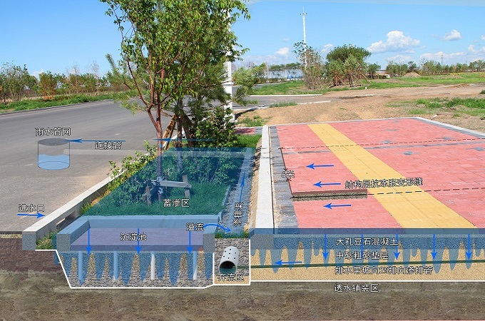 为解决北方道路融雪剂和冻融技术难题,白城市创新研发了道路雨水与含融雪剂融雪径流生态处理与抗冻融透水铺装集成技术。