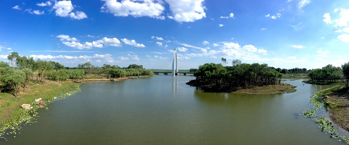 该工程是生态新区景观工程的重要组成部分,也是生态新区的核心绿化景观节点。位于生态新区核心区,北起东海路,南至图乌路,西以长庆南街东侧的商业地块为界,东至南九街。