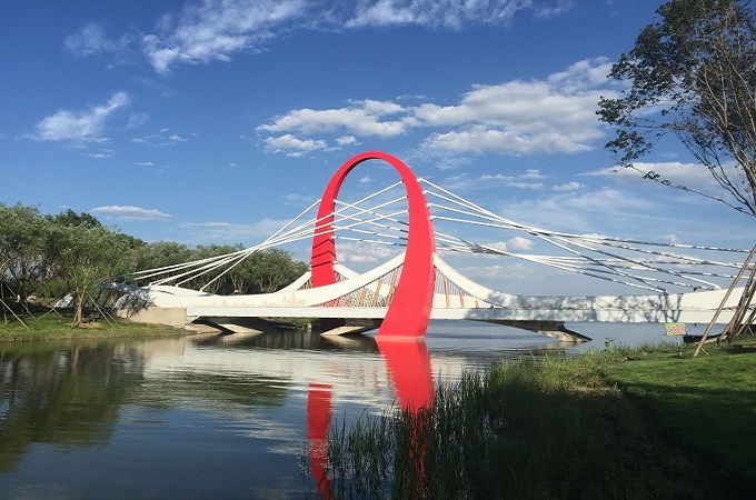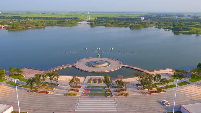 鹤鸣湖公园景观工程,主要包括“一湖(鹤鸣湖)、三岛(欧式风情商业体验岛、湖心生态群岛、绿化景观岛)、九桥(1座公路交通桥,8座景观桥)、一心(城市广场)、多点(沿湖的多个重要景观广场节点)”。