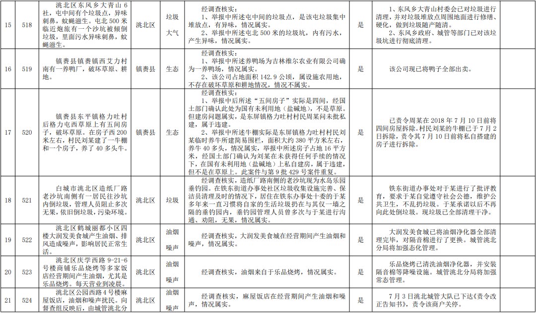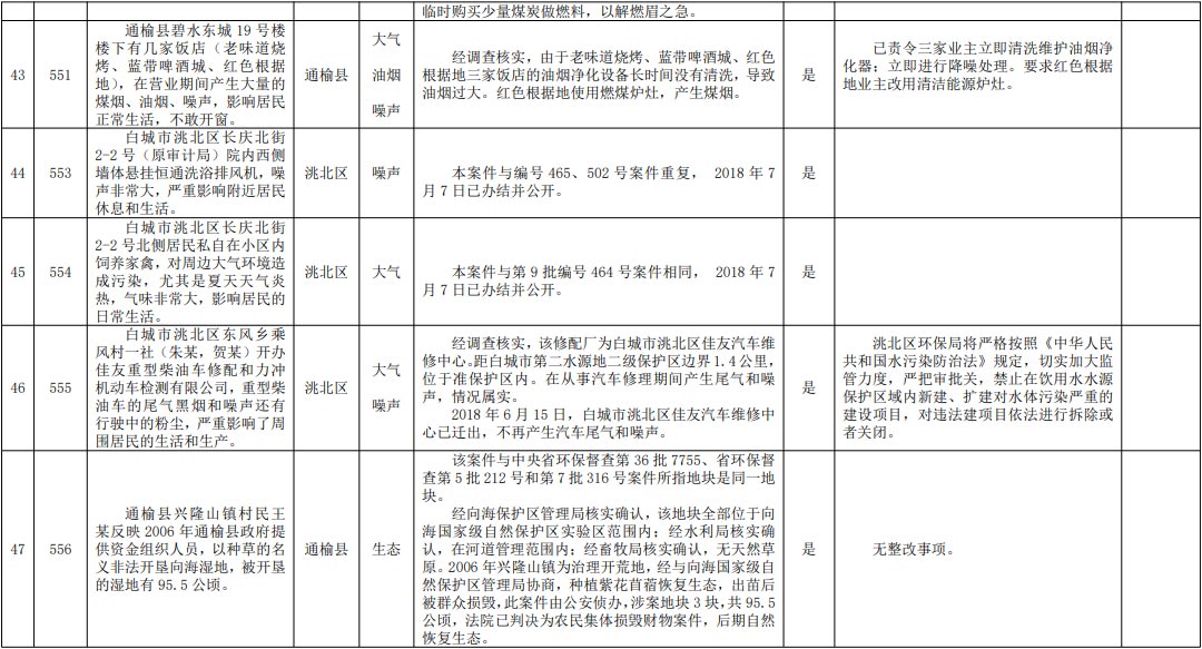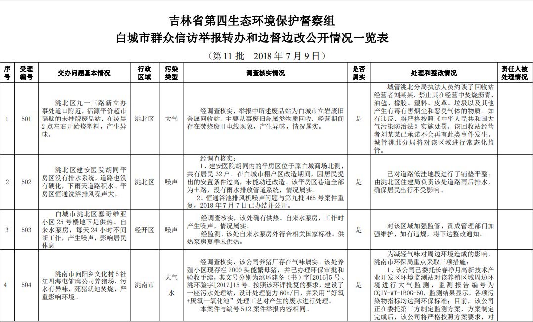 吉林省第四生态环境保护督察组群众信访举报转办和边督边改公开情况一览表