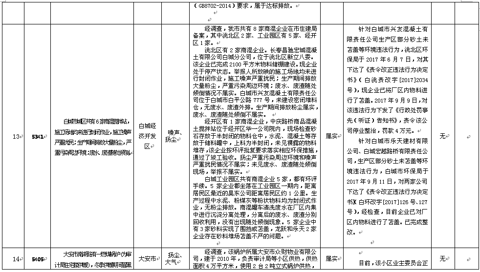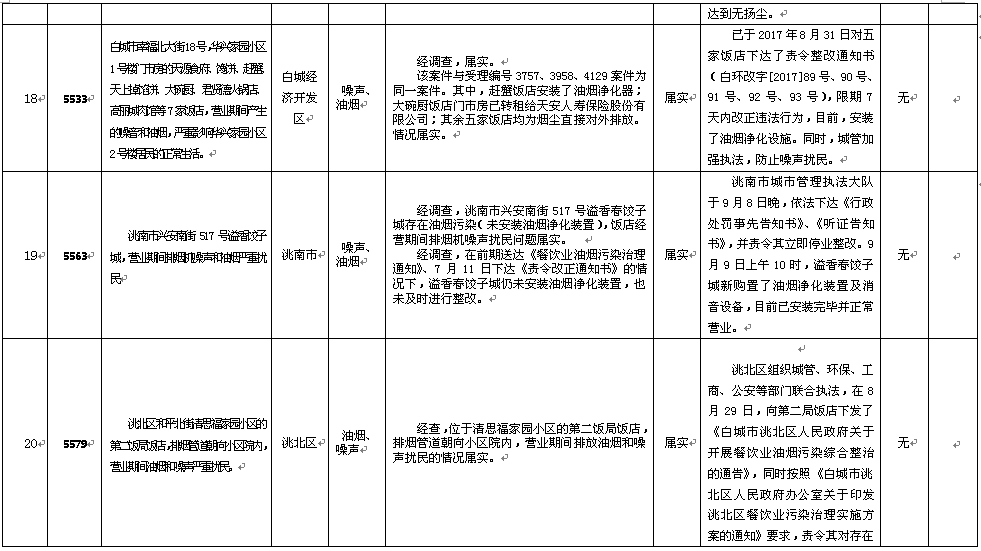 白城市群众信访举报转办和边督边改公开情况一览表(第二十八批2017年9月18日)