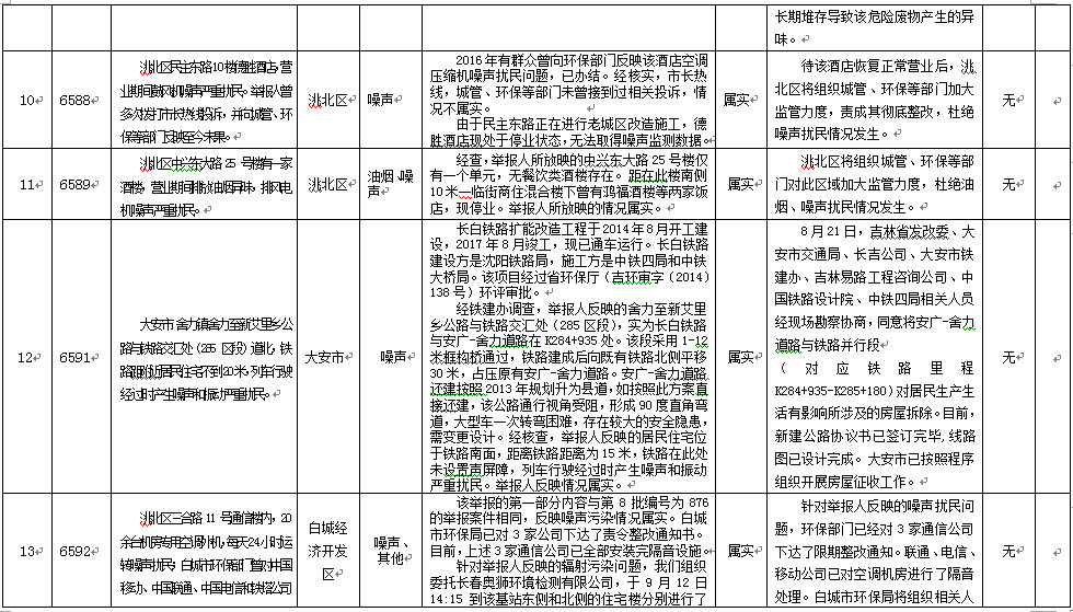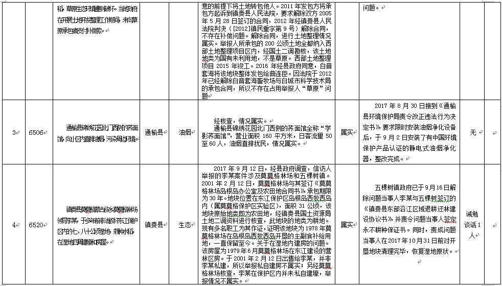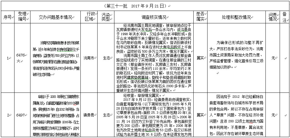 白城市群众信访举报转办和边督边改公开情况一览表(第三十一批2017年9月21日)