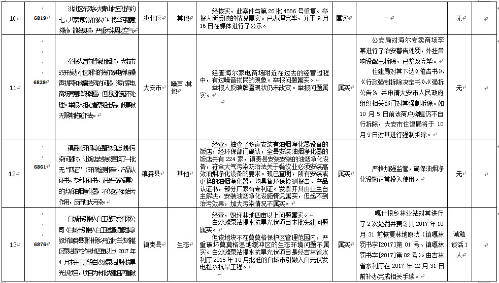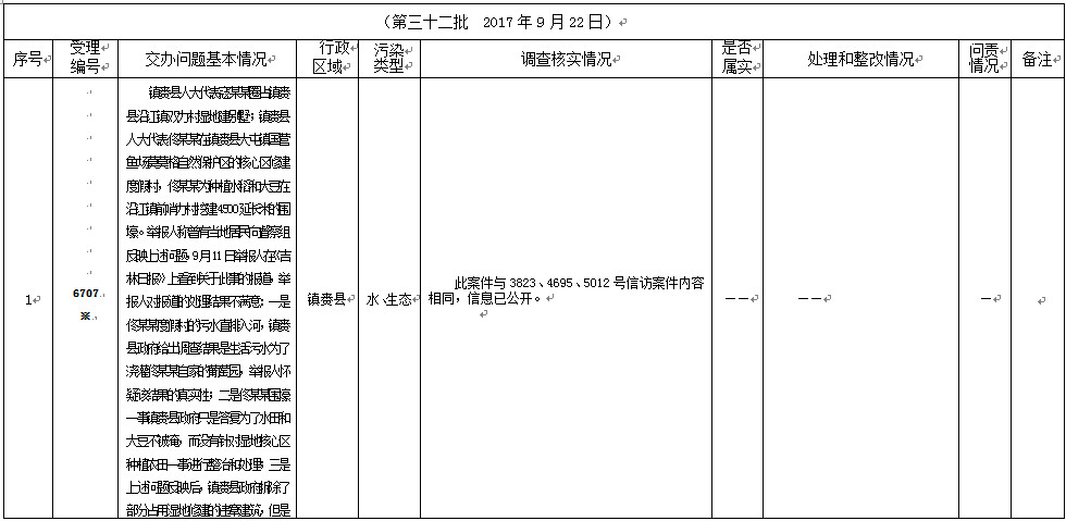 白城市群众信访举报转办和边督边改公开情况一览表(第三十二批2017年9月22日)