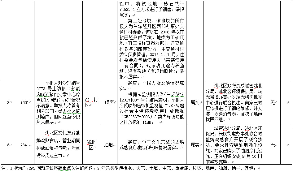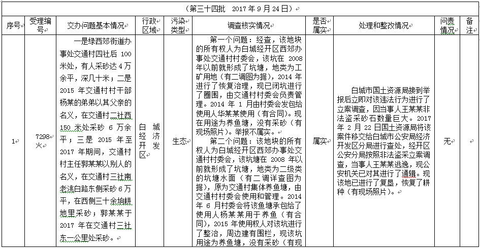 白城市群众信访举报转办和边督边改公开情况一览表(第三十四批2017年9月24日)