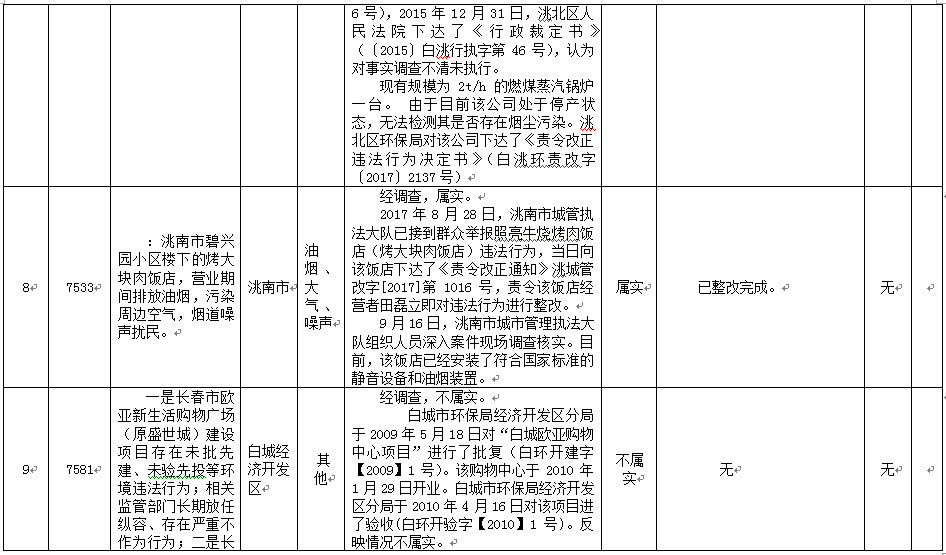 白城市群众信访举报转办和边督边改公开情况一览表(第三十五批2017年9月25日)