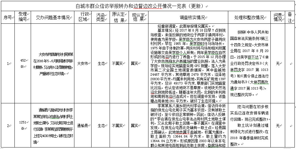 白城市群众信访举报转办和边督边改公开情况一览表(更新)