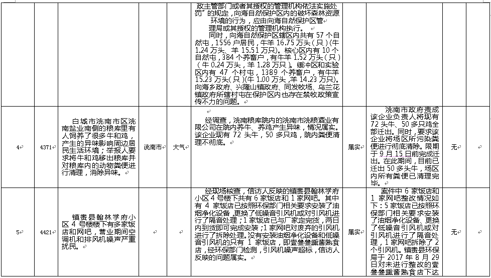 白城市群众信访举报转办和边督边改公开情况一览表(第二十三批2017年9月13日)