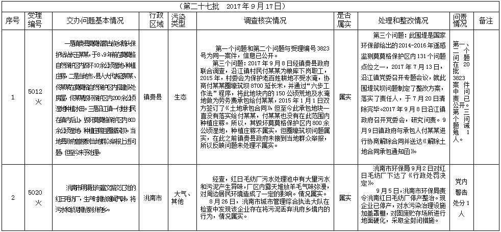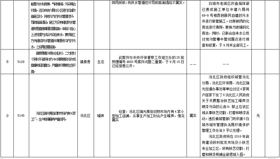 白城市群众信访举报转办和边督边改公开情况一览表(第二十七批2017年9月17日)