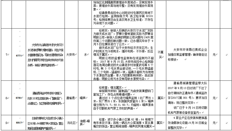 白城市群众信访举报转办和边督边改公开情况一览表(第三十二批2017年9月22日)