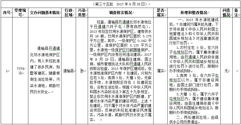 白城市群众信访举报转办和边督边改公开情况一览表(第三十五批2017年9月25日)
