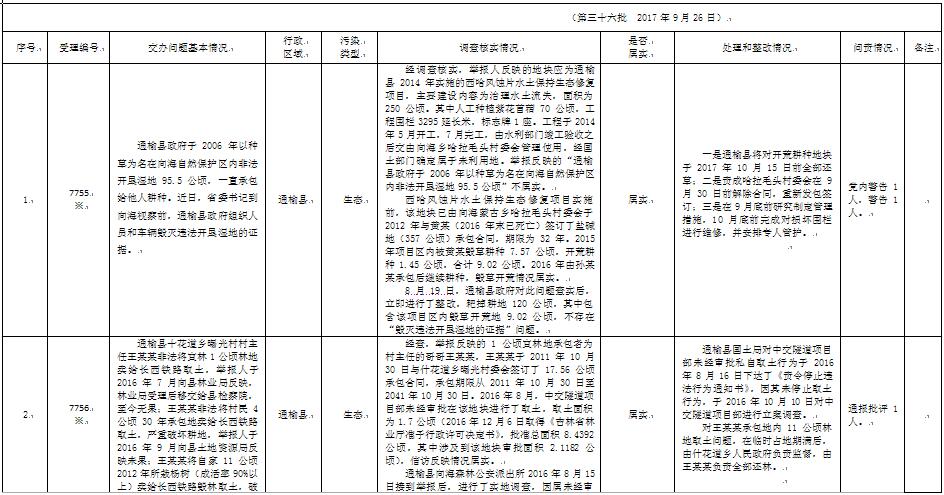 白城市群众信访举报转办和边督边改公开情况一览表(第三十六批2017年9月26日)