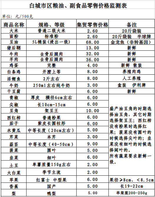2026年1月5日白城市区粮油、副食品零售价格情况