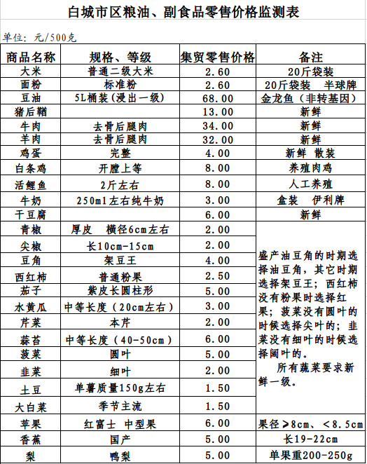 2025年9月1日白城市区粮油、副食品零售价格情况