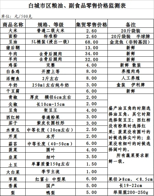 2025年9月22日白城市区粮油、副食品零售价格情况