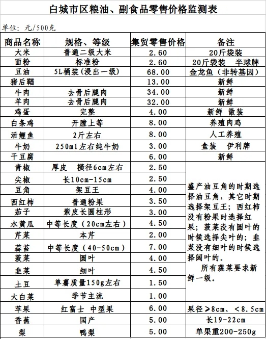 2025年10月13日白城市区粮油、副食品零售价格情况