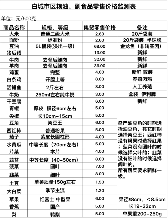 2025年11月17日白城市区粮油、副食品零售价格情况