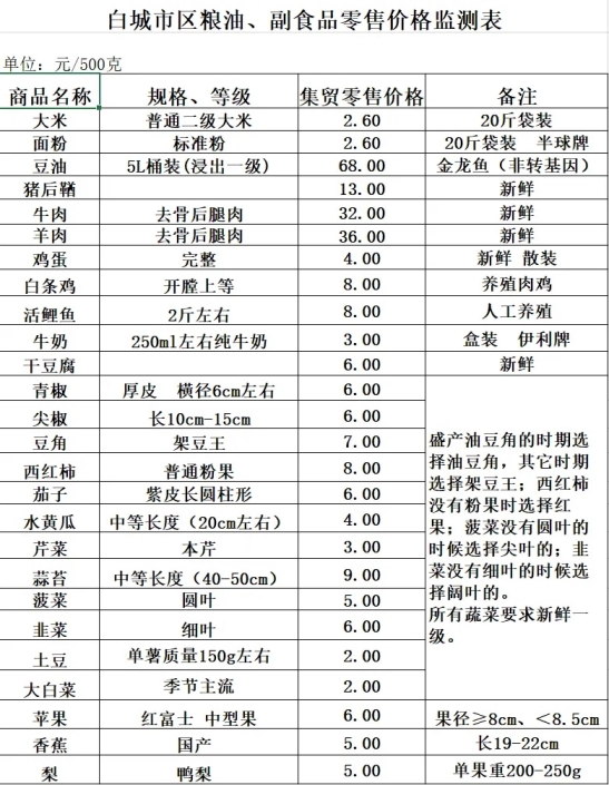 2025年12月29日白城市区粮油、副食品零售价格情况